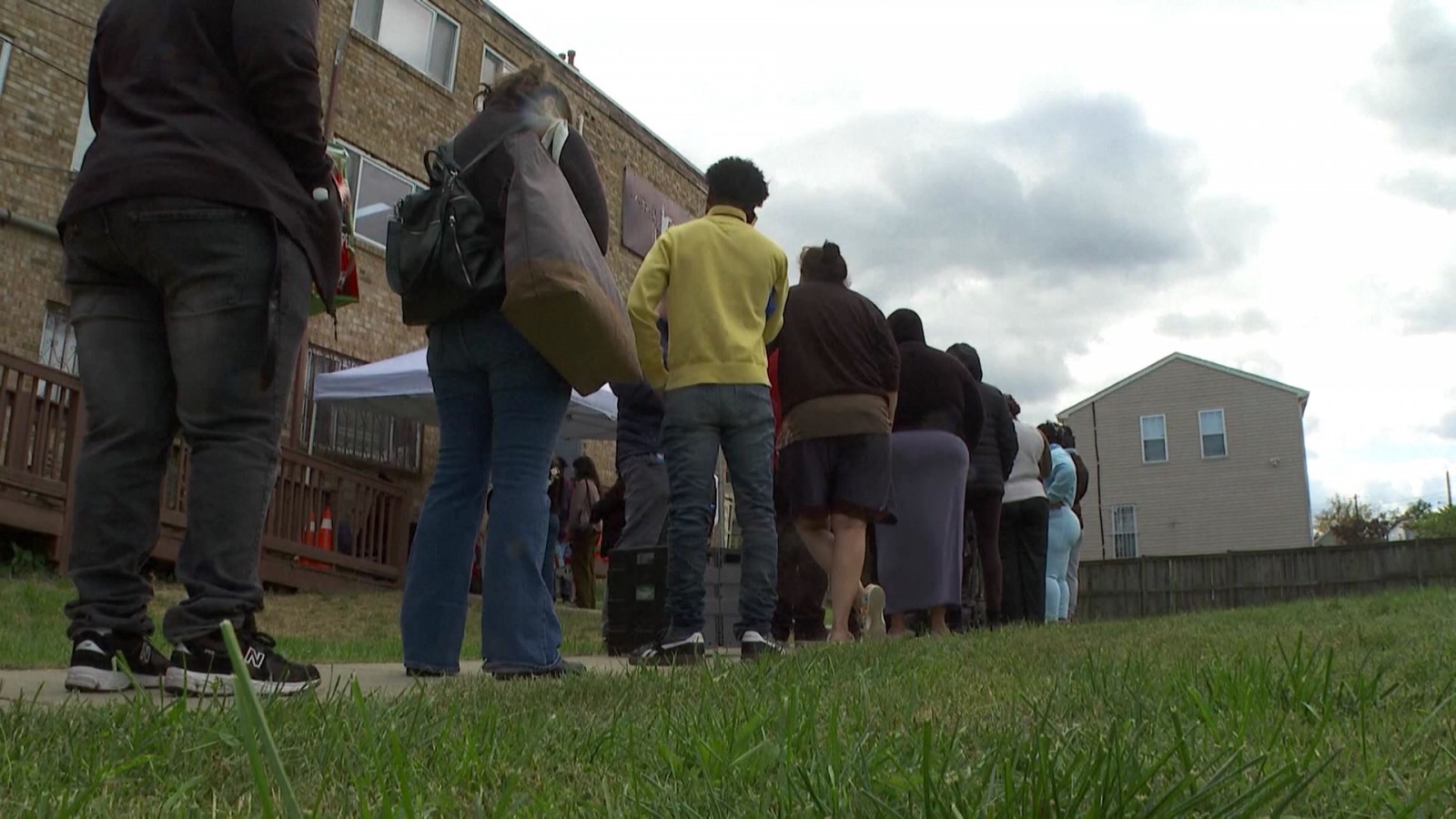 Nhiều người đã phải xếp hàng nhận hỗ trợ lương thực. Ảnh chụp màn hình
