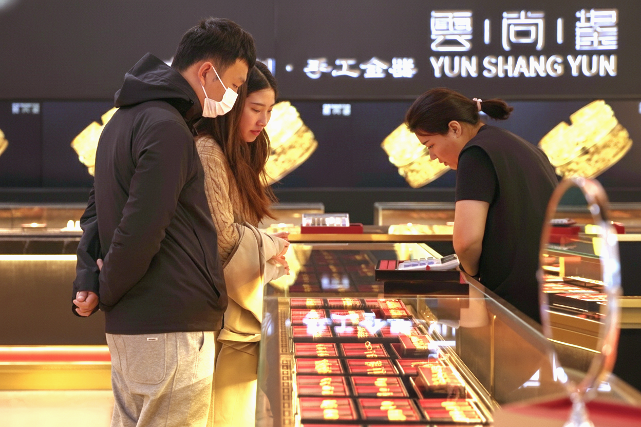 Người dân mua trang sức vàng tại một cửa hàng ở thủ đô Bắc Kinh, Trung Quốc - Ảnh: REUTERS