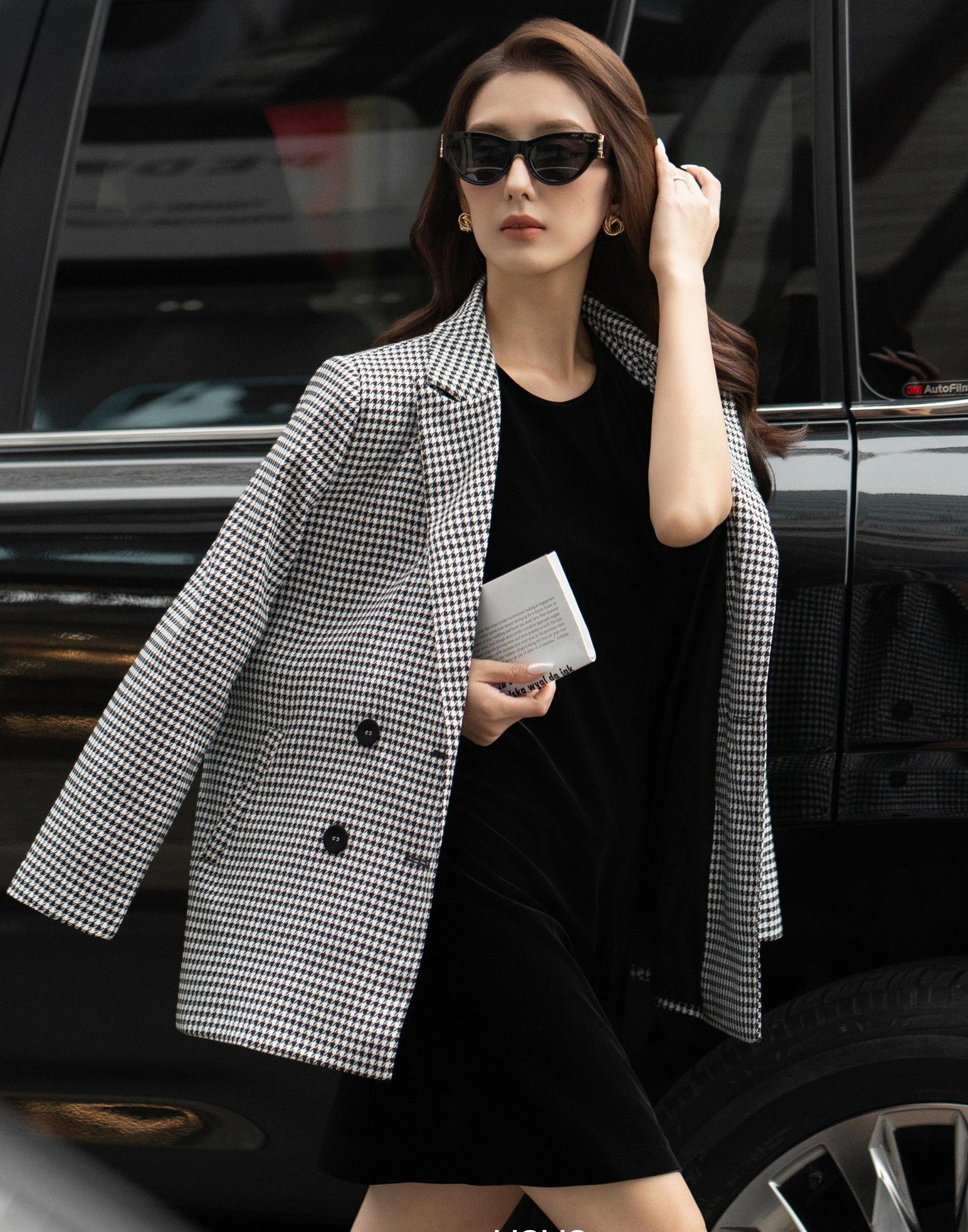 Lên đồ đi làm công sở, dạo phố sau giờ tan tầm, dự tiệc cuối năm hay tham gia sự kiện... quý cô đều có thể chọn mặc áo blazer kèm theo. Họa tiết nanh sói kinh điển được tái hiện trên thiết kế blazer phối mini dress đem đến sự kết hợp hoàn hảo giữa nét cổ điển và tinh thần hiện đại. ẢNH: XAXA