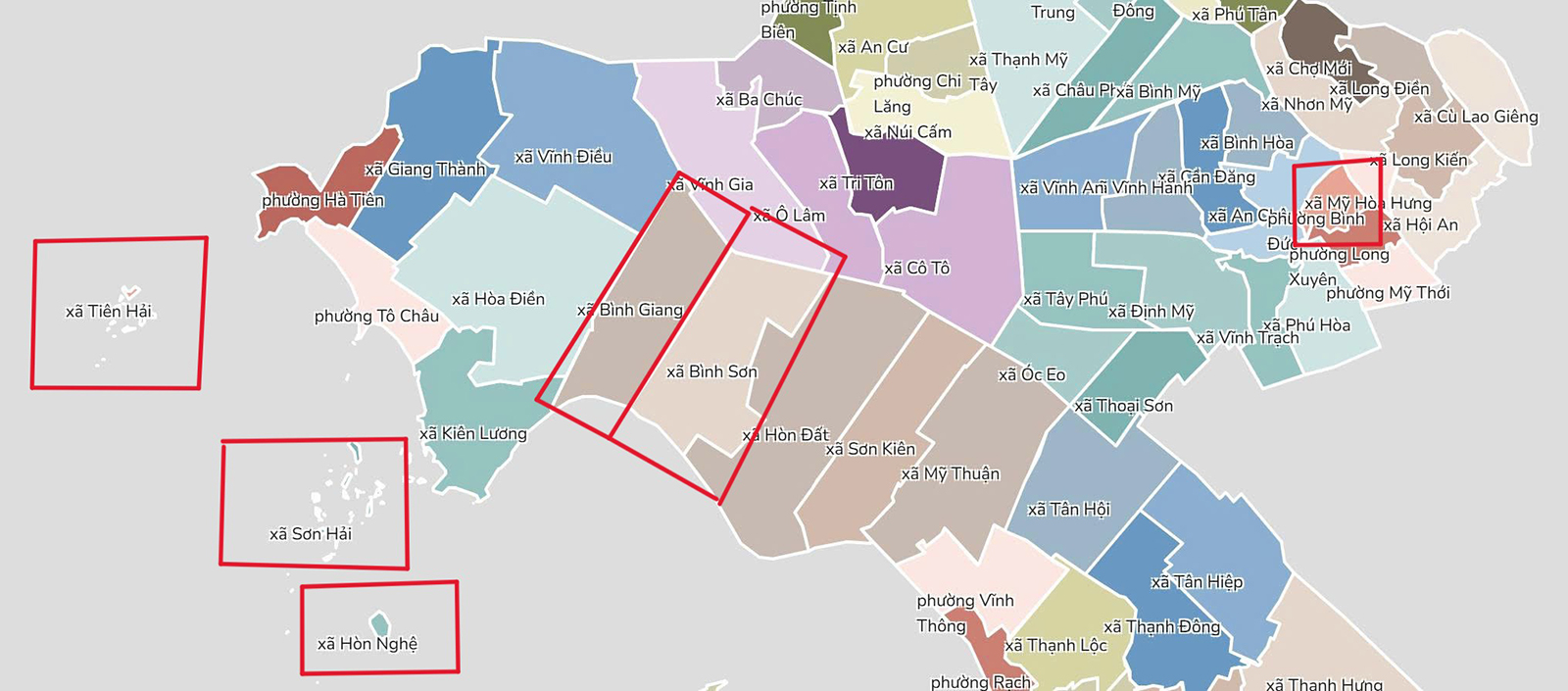 Vị trí của 6 xã giữ nguyên trên bản đồ tỉnh An Giang. Ảnh: GIA KHÁNH