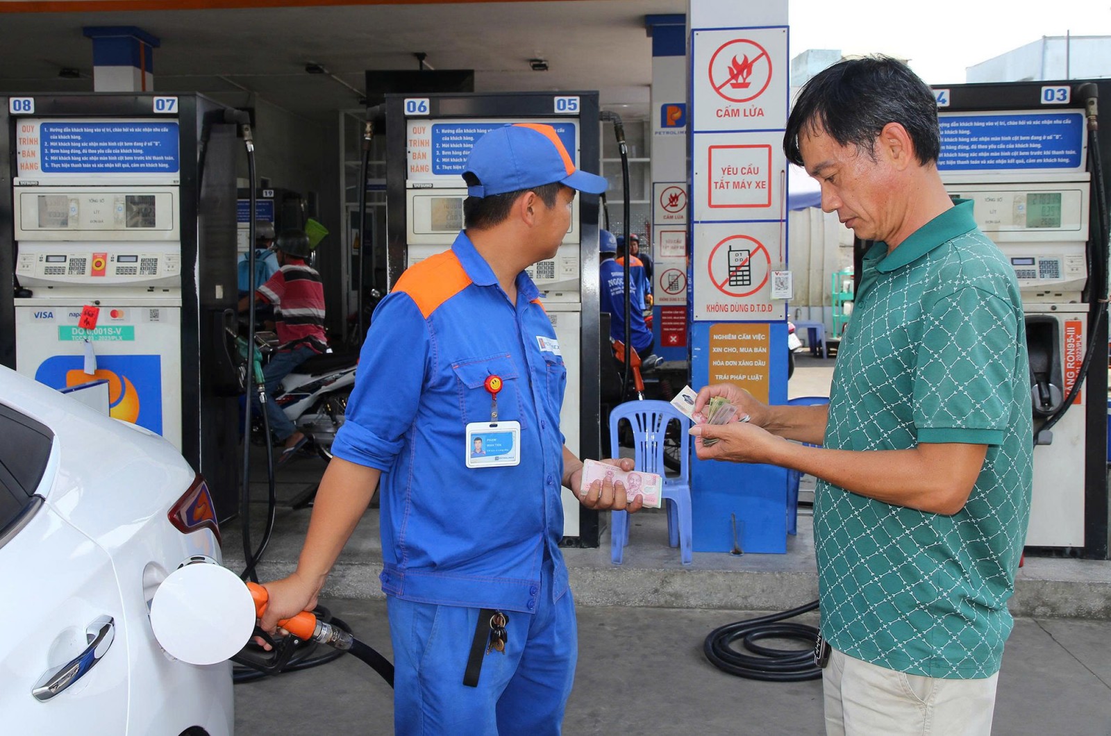 Người dân đổ xăng tại hệ thống xăng dầu Petrolimex An Giang. Ảnh: MINH HIỂN