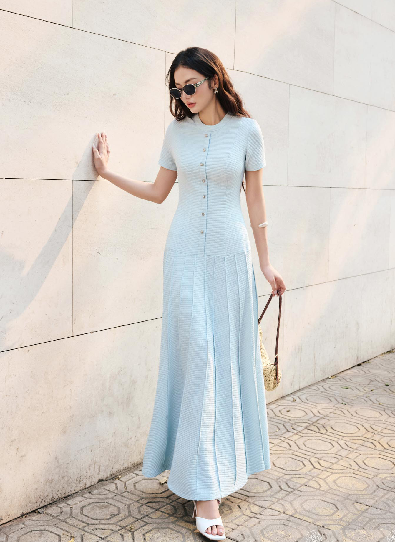 Váy dệt kim dáng dài từng bước chiếm chỗ trong tủ đồ của quý cô hiện đại. Các thiết kế dệt kim có ưu điểm nổi bật ở khả năng đàn hồi nhẹ nhàng mà vẫn giữ phom nên dễ mặc và dễ phối, trang phục sau khi giặt vẫn có phom dáng lịch sự, chỉn chu. ẢNH: CAMELLIA