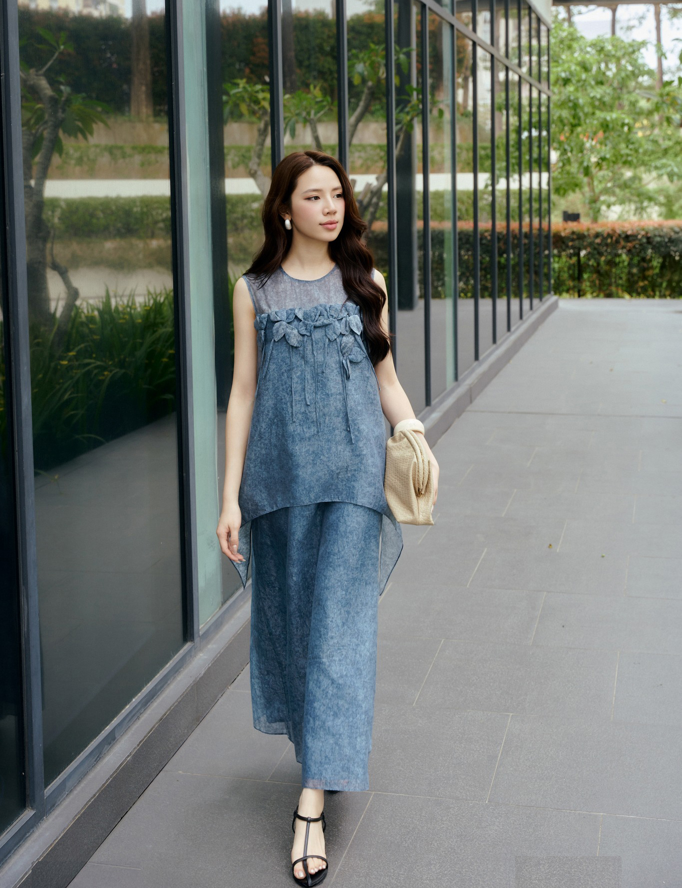 Set áo và quần ống rộng thoải mái, thoáng mát qua cấu trúc không tay, kết hợp hai lớp vải cùng độ dài của trang phục vừa vặn với vóc dáng. Trang phục nhẹ mát, lịch sự mà vẫn mang đậm dấu ấn phong cách cá nhân chính là lựa chọn hàng đầu của hội sành mặc. ẢNH: PANTIO