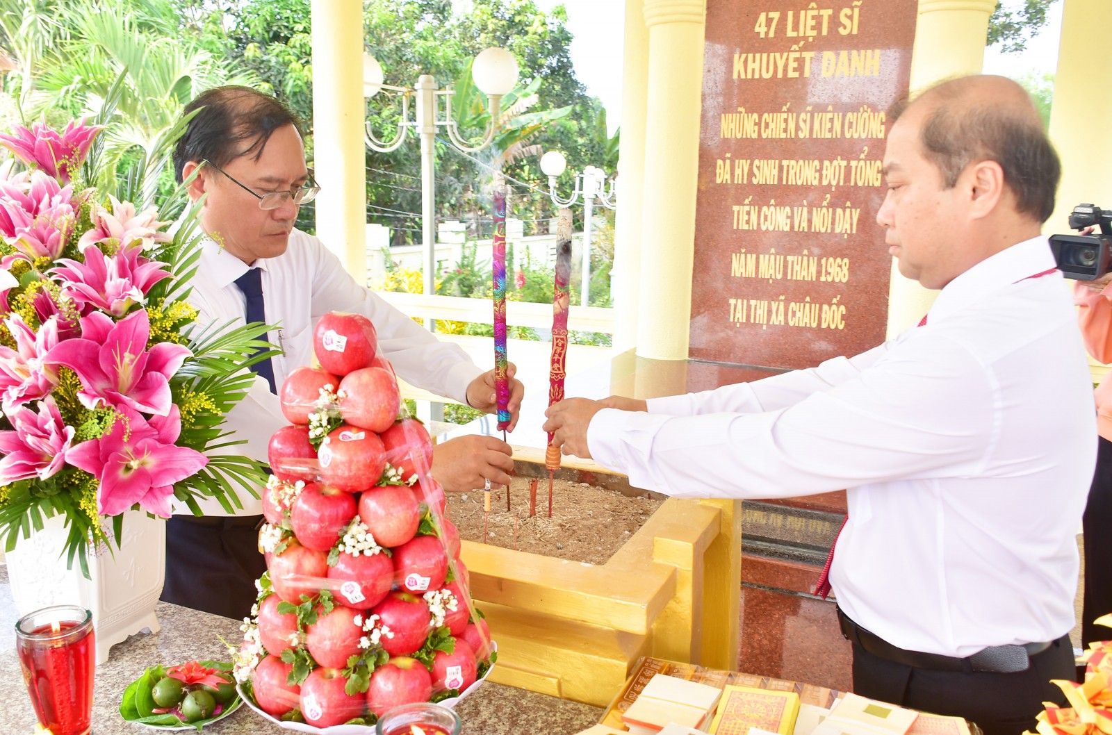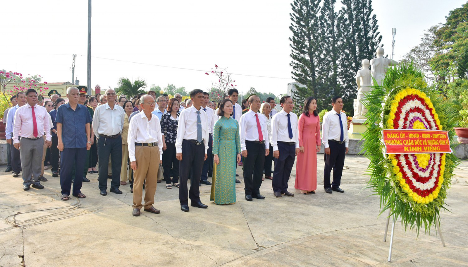 Các đại biểu dâng hương tại Khu tưởng niệm 47 liệt sĩ khuyết danh tại phường Châu Đốc.
