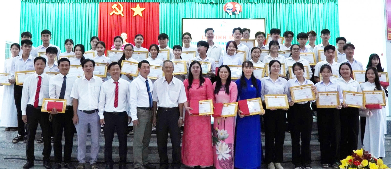 Đảng ủy xã Tân An vinh danh con em trong xã về thành tích học tập, lao động, sáng tạo. Ảnh: MINH HIỂN