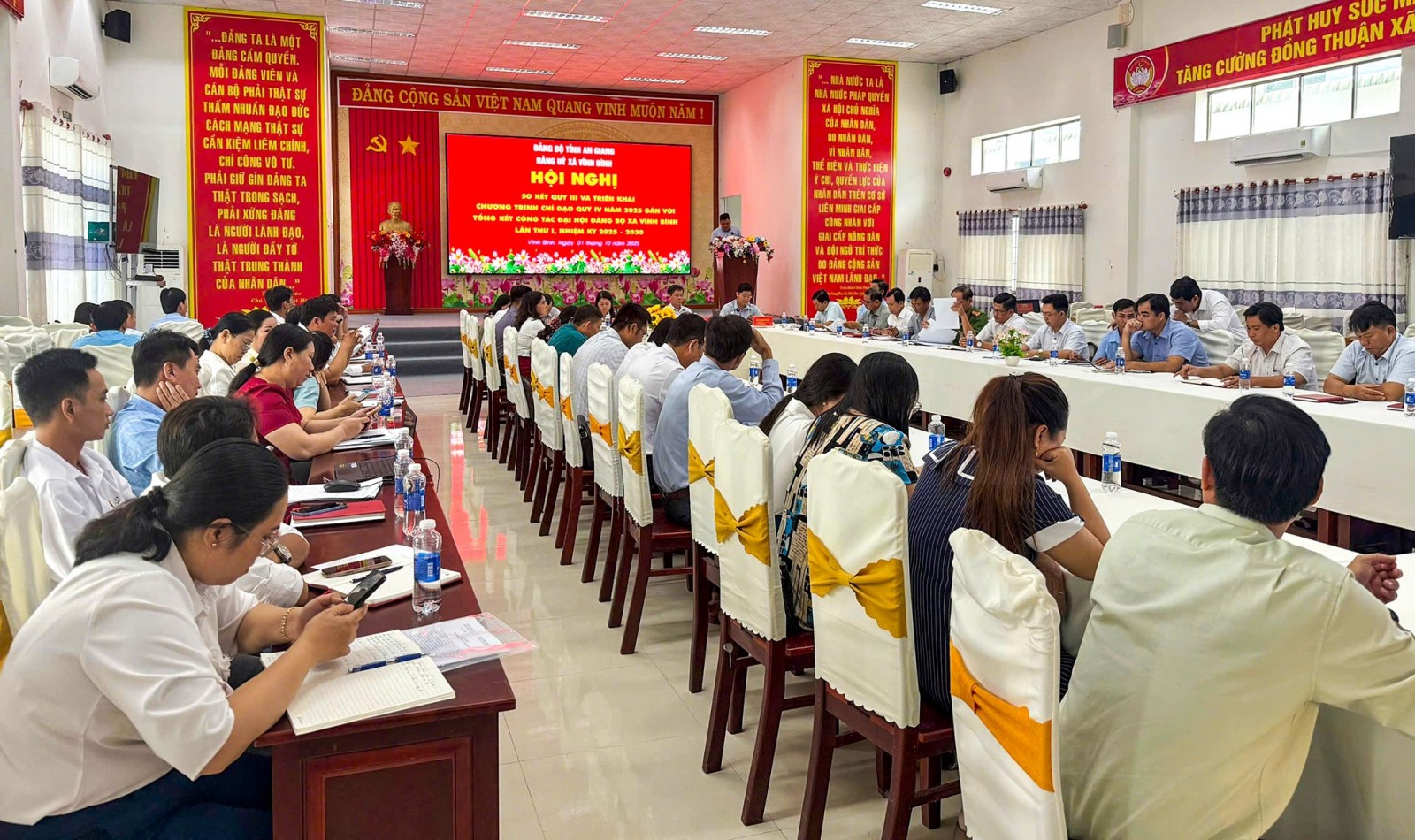 Cùng ngày, Đảng ủy xã Vĩnh Bình tổ chức hội nghị sơ kết tình hình thực hiện nhiệm vụ quý III và triển khai nhiệm vụ quý IV/2025, gắn với tổng kết công tác Đại hội Đảng bộ xã Vĩnh Bình lần I, nhiệm kỳ 2025 - 2030. Dịp này, Đảng ủy xã Vĩnh Bình khen thưởng 11 tập thể và 6 cá nhân hoàn thành xuất sắc nhiệm vụ, góp phần vào thành công của Đại hội đại biểu Đảng bộ xã Vĩnh Bình lần I, nhiệm kỳ 2025 - 2030.