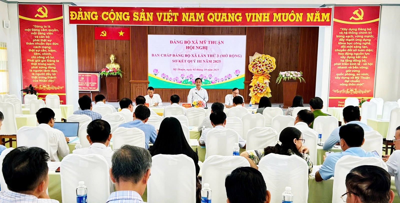 3 tháng cuối năm 2025, Bí thư Đảng ủy xã Mỹ Thuận Dương Thanh Nhã yêu cầu UBND xã tập trung rà soát, phấn đấu hoàn thành các chỉ tiêu phát triển kinh tế - xã hội năm 2025, khẩn trương xây dựng kế hoạch phát triển giai đoạn 2026 - 2030.