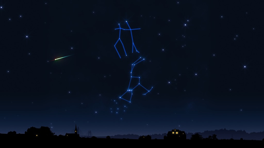 Chòm sao Song Tử hình hai anh em song sinh nằm phía trên cánh tay giơ lên của chòm sao Lạp Hộ hình người thợ săn - Ảnh: NASA