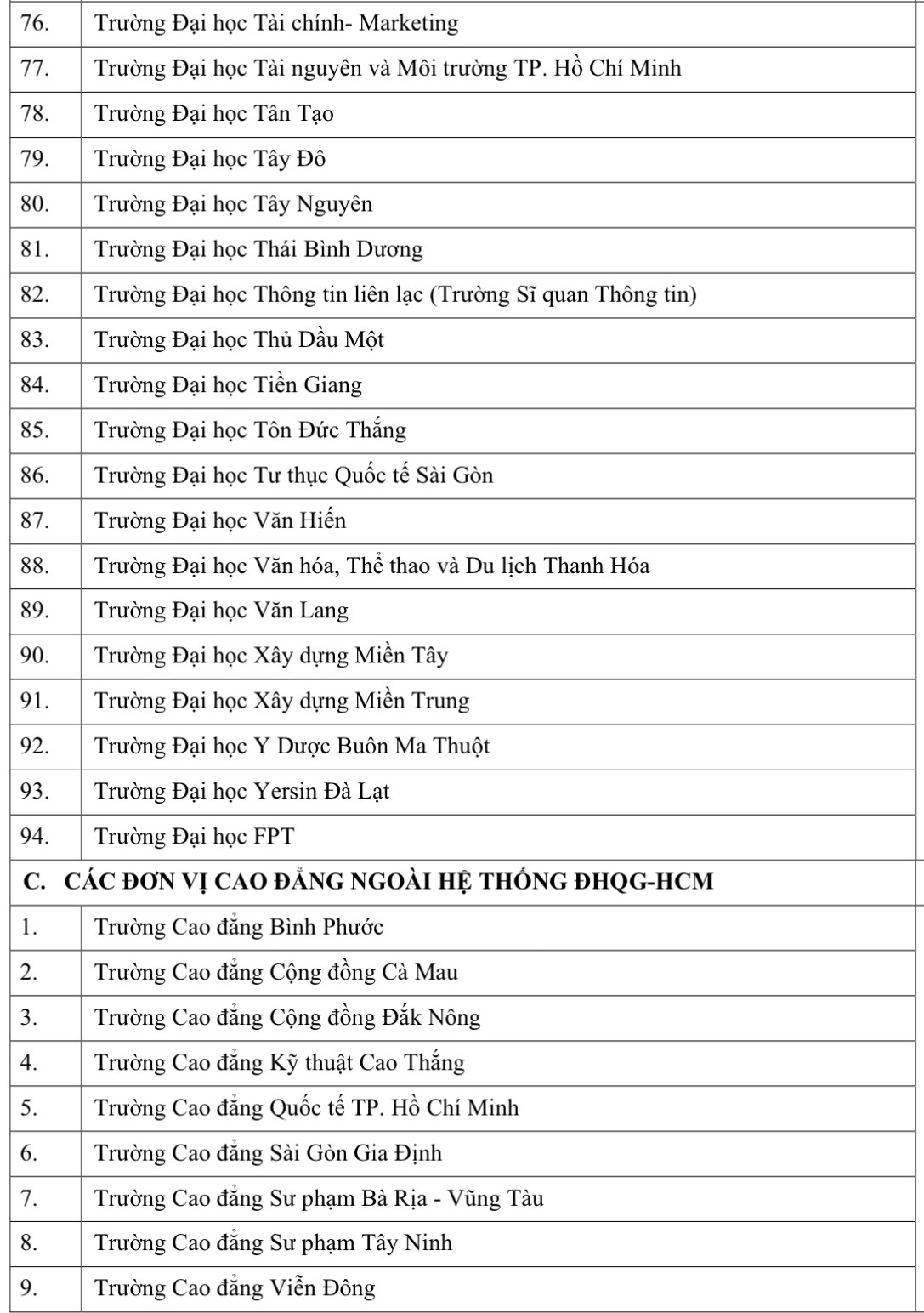Đại học Quốc gia TP. Hồ Chí Minh vừa cập nhật danh sách các trường đại học-cao đẳng đăng ký sử dụng điểm thi đánh giá năng lực năm 2026 để xét tuyển.