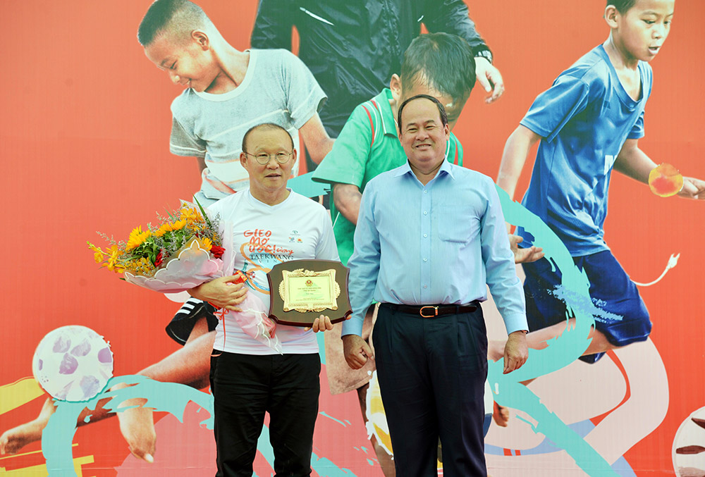 Theo đó, Phó Chủ tịch UBND tỉnh đã cảm ơn ông Park Hang-seo đã tham gia Chương trình “Gieo mơ ước”, góp phần mang lại niềm vui, cũng như động lực vươn lên trong thể thao cho các em thiếu nhi An Giang.