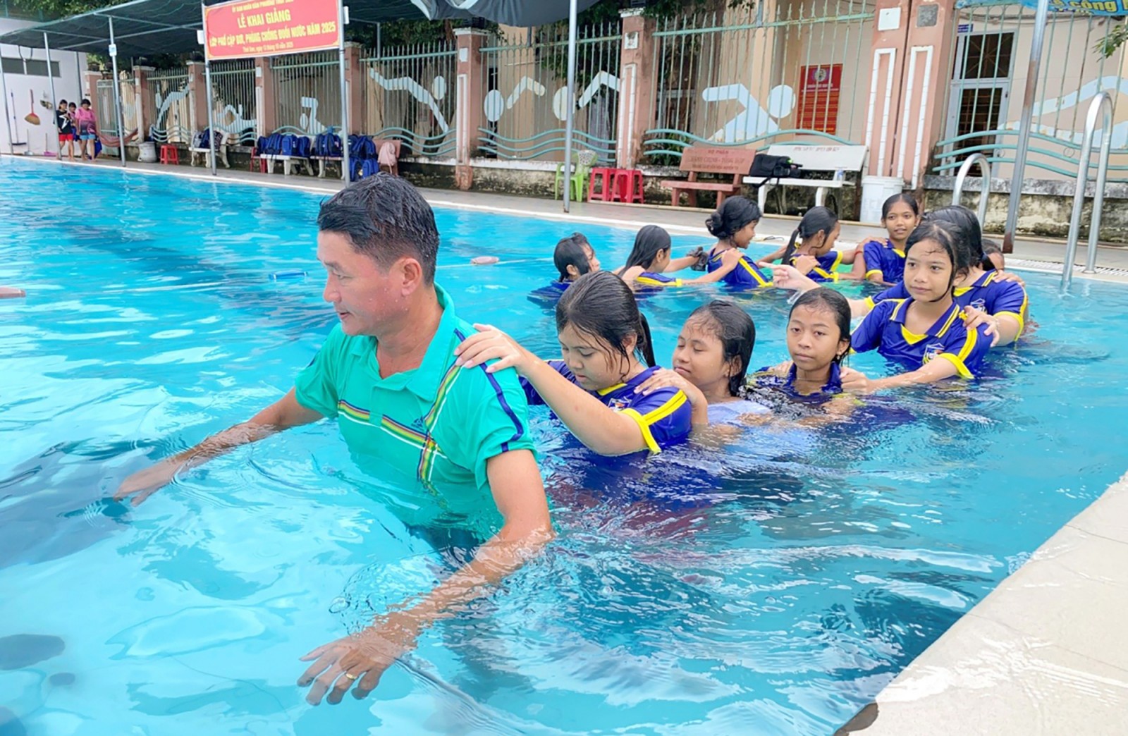Tại các lớp học, học sinh được hướng dẫn kỹ năng bơi cơ bản theo tiêu chuẩn hiện hành (bơi liên tục ít nhất 25m), giữ nổi ít nhất 90 giây và kỹ năng an toàn trong môi trường nước; cách xử lý khi gặp tình huống nguy hiểm dưới nước...