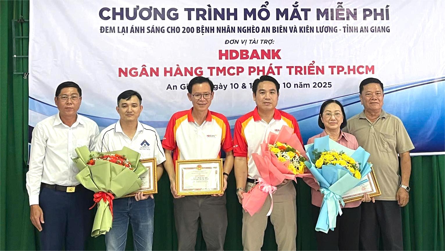 Dịp này, HDBank chi nhánh Kiên Giang trao hơn 100 phần quà cho bệnh nhân sau phẫu thuật. UBND xã An Biên tặng giấy khen 3 tập thể có nhiều đóng góp cho chương trình.