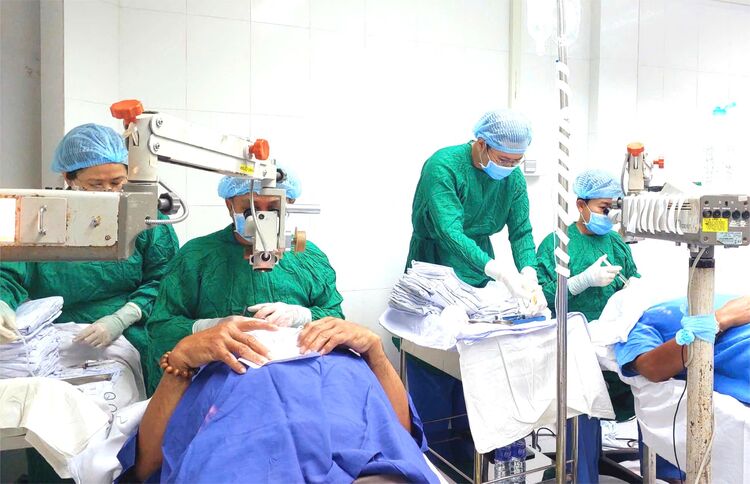 Đoàn y, bác sĩ đã khám sàng lọc cho 115 người, chỉ định phẫu thuật 84 ca đục thủy tinh thể bằng kỹ thuật Phaco kính mềm hiện đại, ít đau, giúp phục hồi thị lực nhanh. Chi phí mỗi ca phẫu thuật khoảng 1,6 triệu đồng, được tài trợ hoàn toàn.