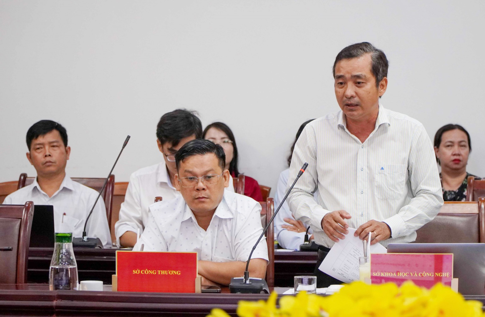 Phó Giám đốc Sở Khoa học và Công nghệ Trần Trung Hiếu phát biểu tại cuộc họp.