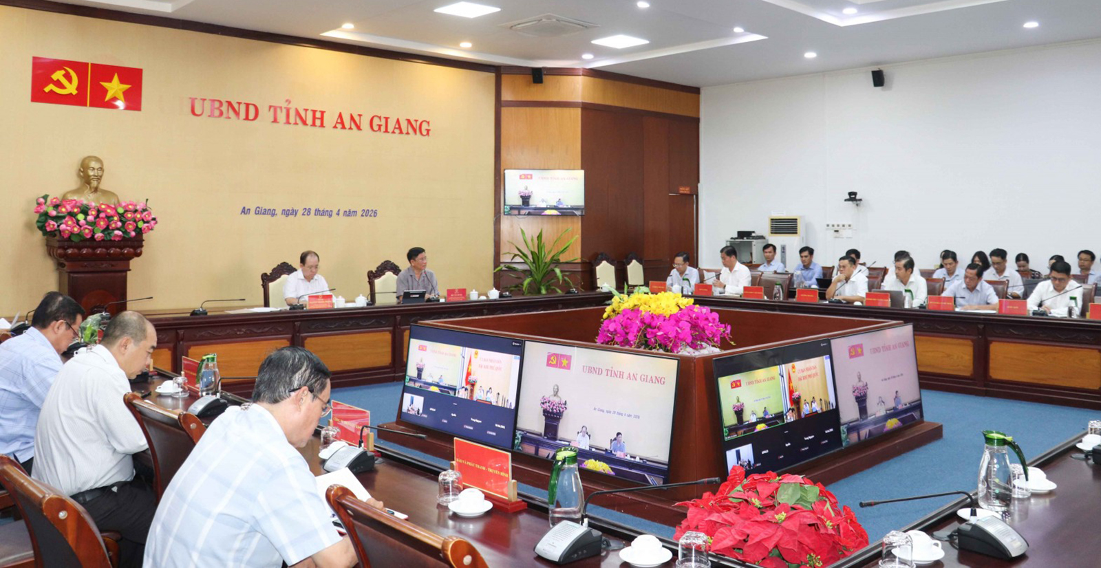 Tại cuộc họp, các đơn vị đã báo cáo tiến độ công tác chuẩn bị của Tiểu ban Nội dung, Tiểu ban Lễ tân, Tiểu ban Hậu cần - An ninh - Y tế; báo cáo công tác chuẩn bị họp báo thông tin tình hình phát triển kinh tế - xã hội 4 tháng đầu năm 2026 và hội nghị công bố quy hoạch và xúc tiến đầu tư tỉnh An Giang.