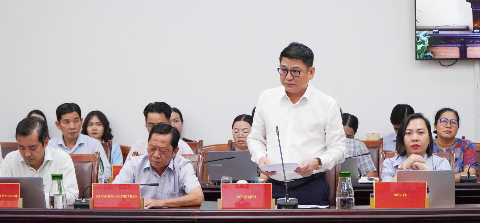 Giám đốc Sở Du lịch tỉnh An Giang Bùi Quốc Thái phát biểu tại cuộc họp.