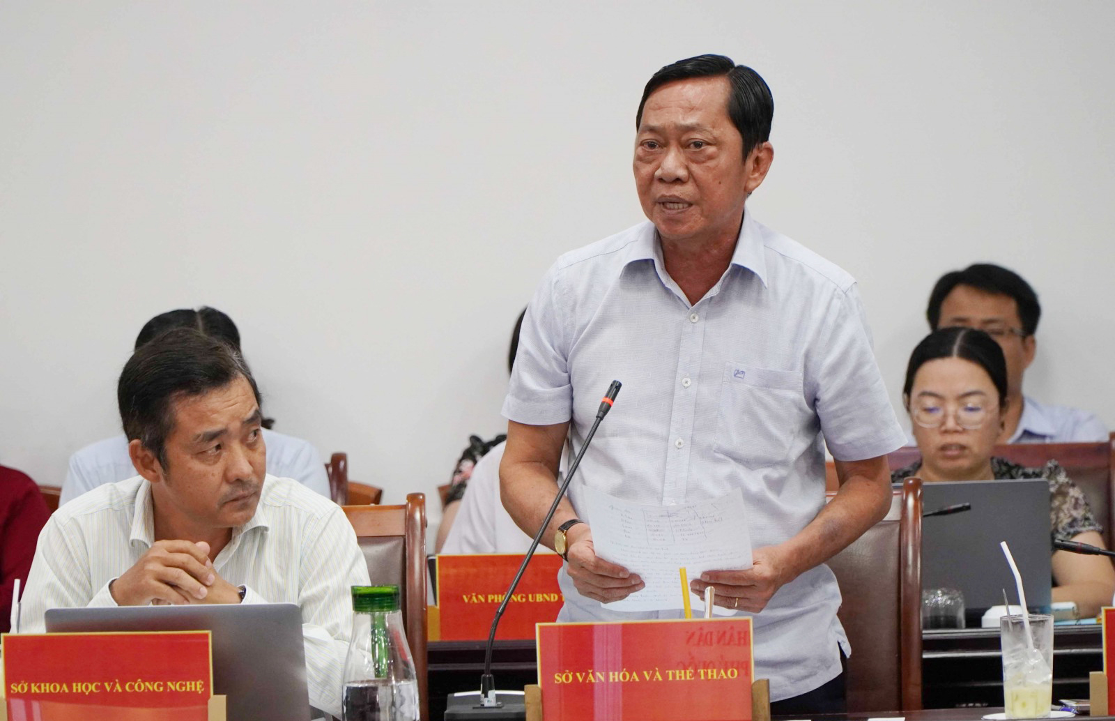 Giám đốc Sở Văn hóa và Thể thao tỉnh An Giang Nguyễn Khánh Hiệp phát biểu tại cuộc họp.