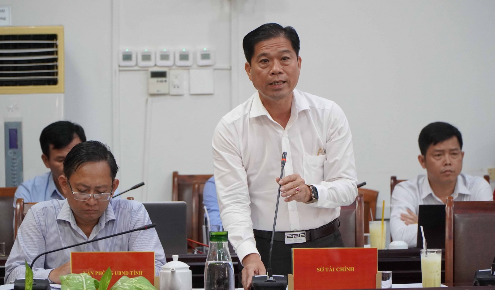 Giám đốc Sở Tài chính tỉnh An Giang Phạm Minh Tâm phát biểu tại cuộc họp.