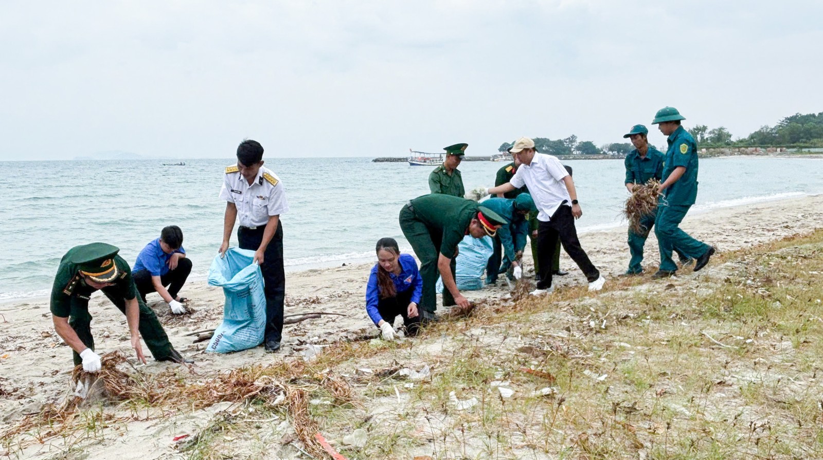 Sau lễ khánh thành, gần 100 cán bộ, chiến sĩ, đoàn viên, thanh niên và học sinh trên địa bàn xã đảo tham gia thu gom khoảng 2 tấn rác thải, làm sạch hơn 500m bờ biển Bãi Bắc, góp phần bảo vệ môi trường.