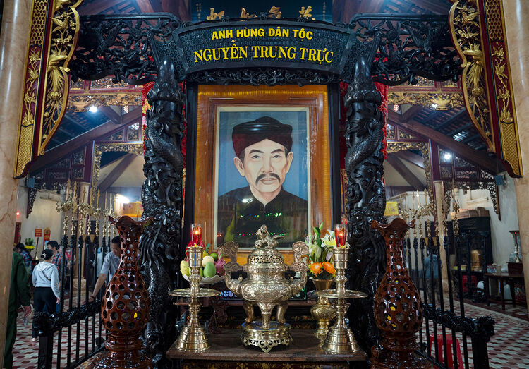 Bàn thờ Anh hùng dân tộc Nguyễn Trung Trực trong Khu Di tích lịch sử văn hóa mộ và đình Nguyễn Trung Trực tại phường Rạch Giá. Ảnh: TRUNG HIẾU