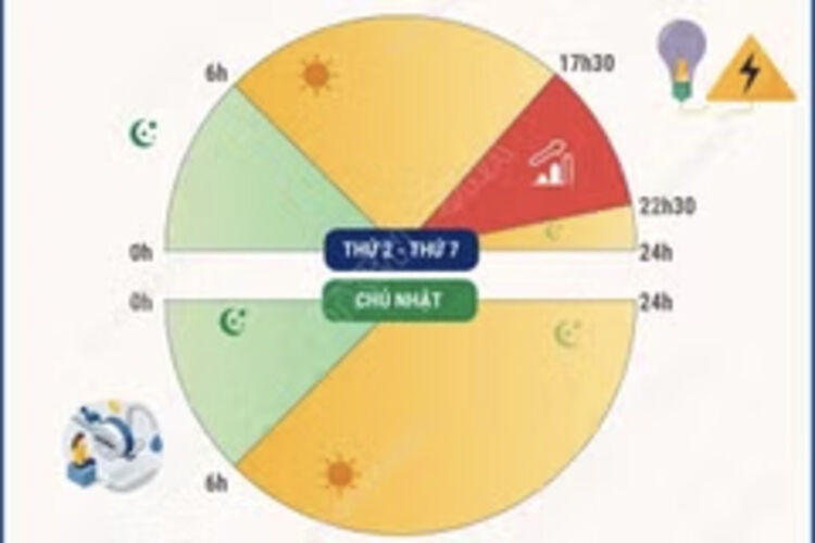 Vào ngày Chủ nhật, giờ bình thường được áp dụng liên tục từ 6h đến 24h. Khung giờ thấp điểm được quy định từ 0h đến 6h sáng cho tất cả các ngày trong tuần, với tổng thời gian 6 giờ/ngày.