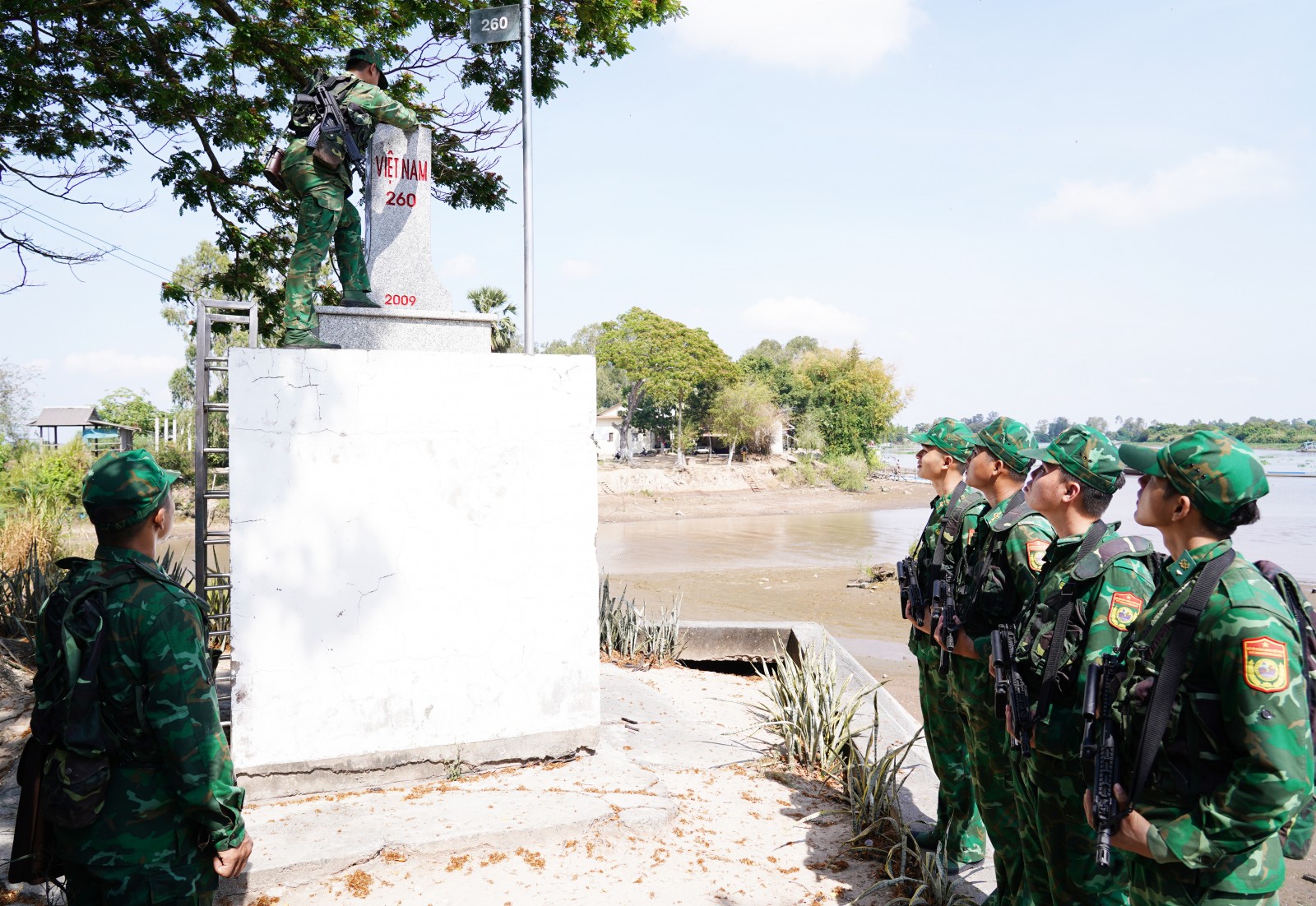 Cán bộ, chiến sĩ Đồn Biên phòng Cửa khẩu Vĩnh Hội Đông, Ban Chỉ huy Bộ đội Biên phòng tỉnh An Giang tuần tra bảo vệ đường biên, mốc quốc giới.