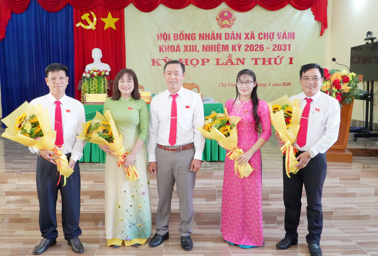 Tặng hoa chúc mừng Chủ tịch HĐND, Phó Chủ tịch HĐND và Trưởng các Ban HĐND xã Chợ Vàm khóa XIII, nhiệm kỳ 2026 - 2031.