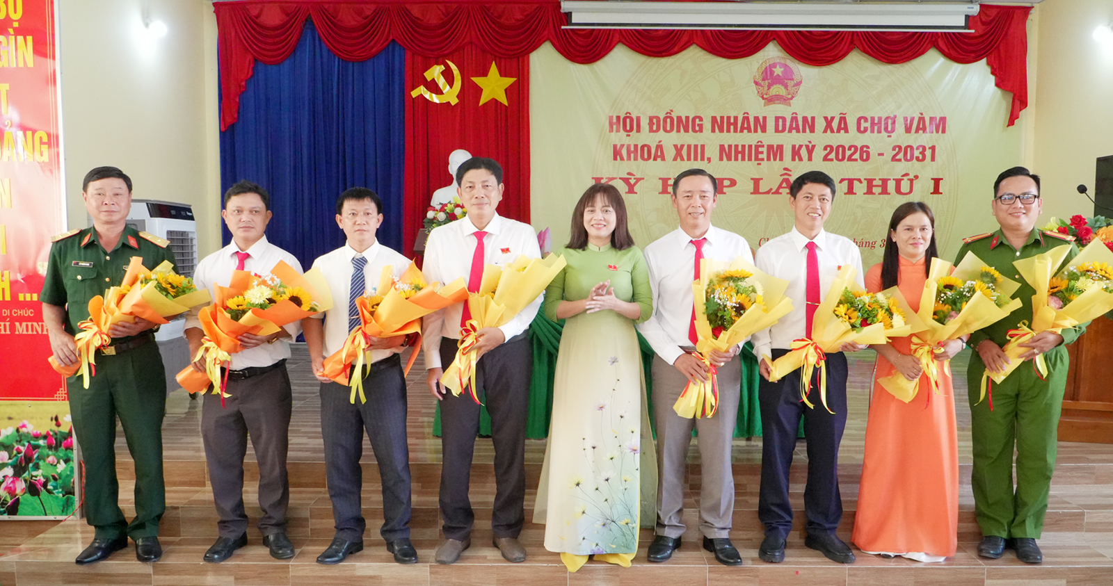 Tặng hoa chúc mừng Chủ tịch, các Phó Chủ tịch UBND xã và các Ủy viên UBND xã Chợ Vàm nhiệm kỳ 2026 - 2031.