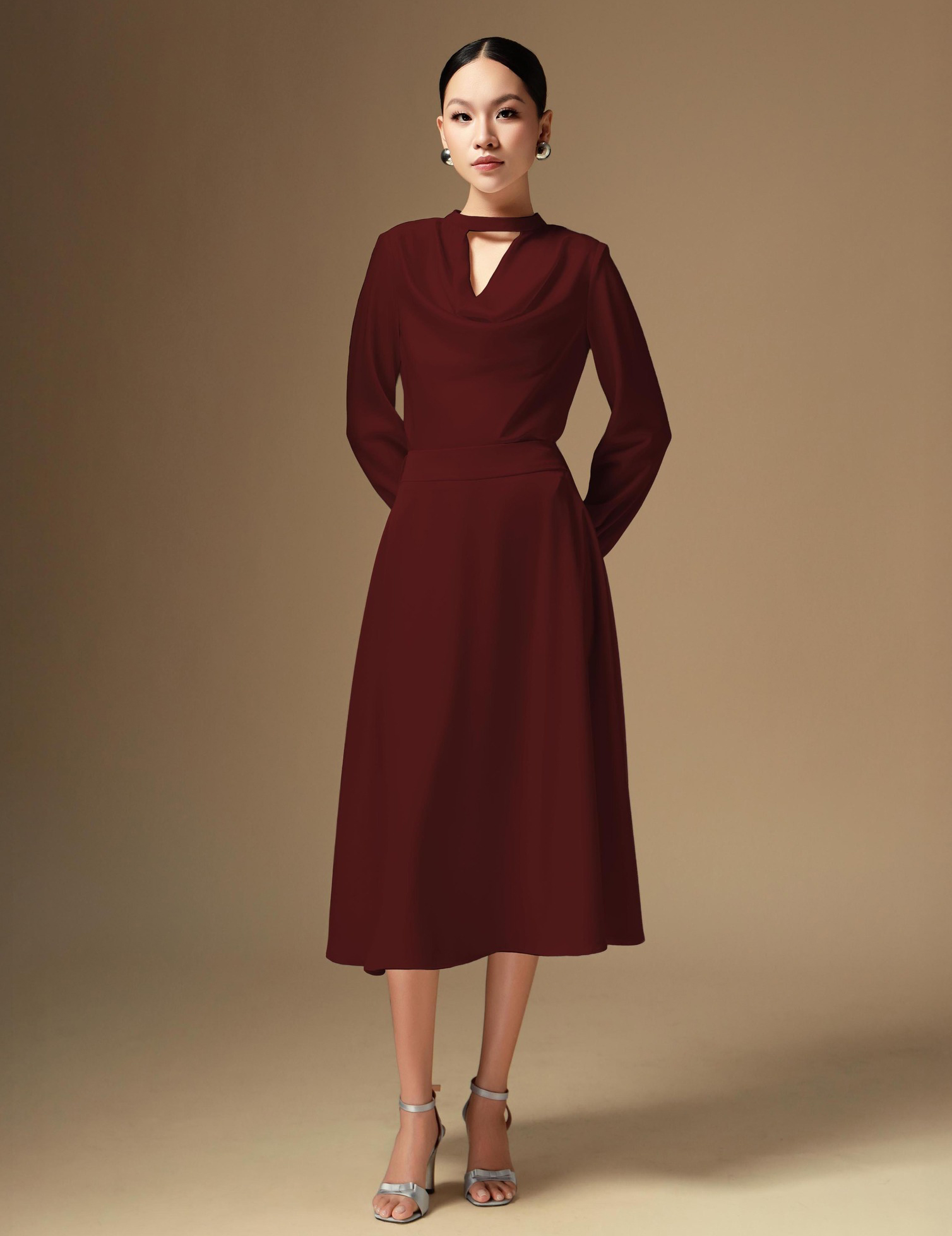 Gam màu đỏ mận giàu sức hút mang đến hình ảnh mới cho nàng diện đi làm, đi tiệc. Với các thiết kế đầm liền, nàng có thể bước thẳng từ văn phòng ra đường phố, hòa vào những lễ hội cuối năm trong một diện mạo trang nhã, nổi bật và gây ấn tượng khó quên. ẢNH: ANMIER