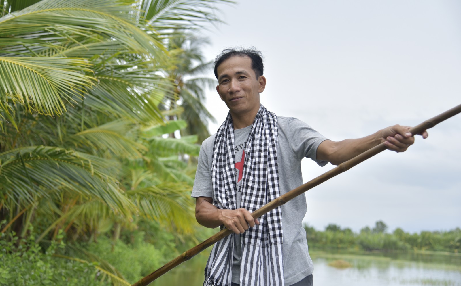 Bơi xuồng đưa chúng tôi tham quan bờ trồng dừa với đủ lứa tuổi khác nhau, anh Đáng cho biết: “Lúc trước dừa khô nhiều quá, dừa trái và cơm dừa đều rẻ bèo. Có lúc dừa ế lên mộng hàng ngàn trái, đem cho cả xóm ăn vẫn không hết. Lúc đó, tôi mới nghĩ, sao không thử trồng dừa lấy củ hủ”. Ý tưởng ấy đến tình cờ, nhưng lại trở thành ngã rẽ cuộc đời anh.