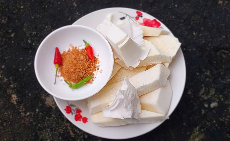Củ hủ dừa lắc xê chấm muối là món khoái khẩu đang được ưa chuộng hiện nay. Ảnh: ĐẶNG LINH