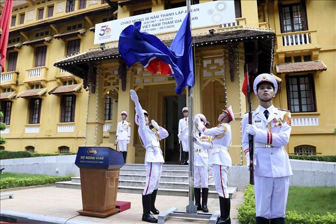 Tại Lễ Thượng cờ, Bộ trưởng Bộ Ngoại giao Bùi Thanh Sơn nhấn mạnh, kể từ khi được thành lập cách đây 56 năm, ASEAN không ngừng lớn mạnh, từng bước trở thành lực lượng trung tâm trong mọi tiến trình khu vực, thể hiện tầm nhìn về một Cộng đồng sống trong hòa bình, ổn định và phát triển thịnh vượng. Hình ảnh Đông Nam Á đoàn kết, hòa hiếu, linh hoạt cũng theo đó vươn xa tới những chân trời mới, lan tỏa tới những vùng đất mới cả ở châu Á - Ấn Độ Dương - Thái Bình Dương và thế giới.