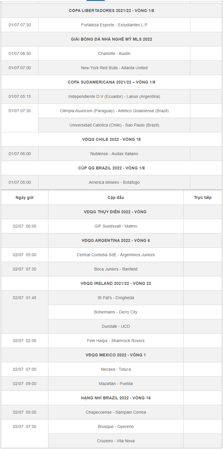 Cung cấp lịch thi đấu bóng đá hôm nay (1/7), các trận đấu trong nước và quốc tế đáng chú ý đêm nay, rạng sáng mai.