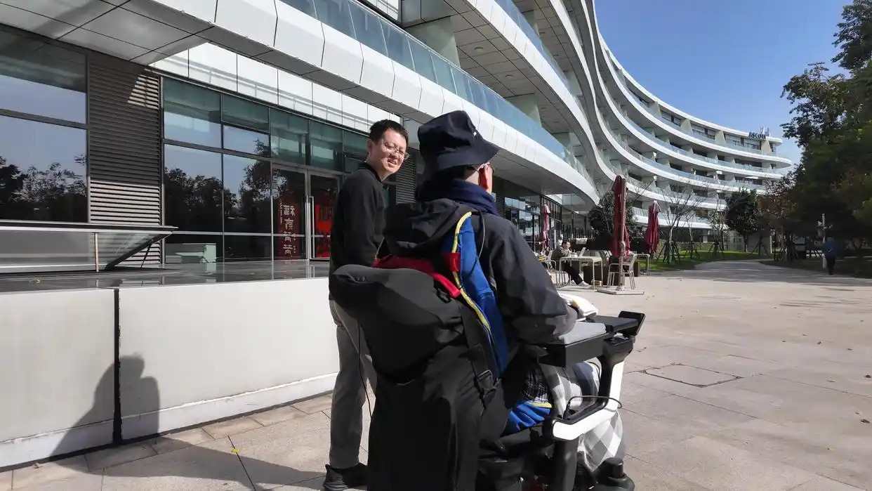 Nhà nghiên cứu Triệu Trịnh Thác và anh Trương (ngồi xe lăn) - Ảnh: PEOPLE'S DAILY