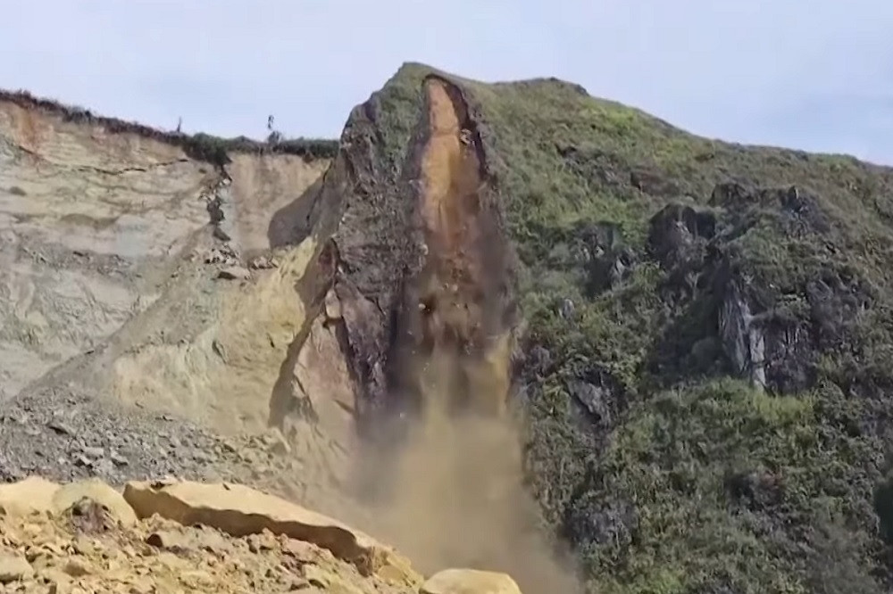 Đất đá trên núi gần làng Yambali, Papua New Guinea tiếp tục lở. Ảnh: The Guardian