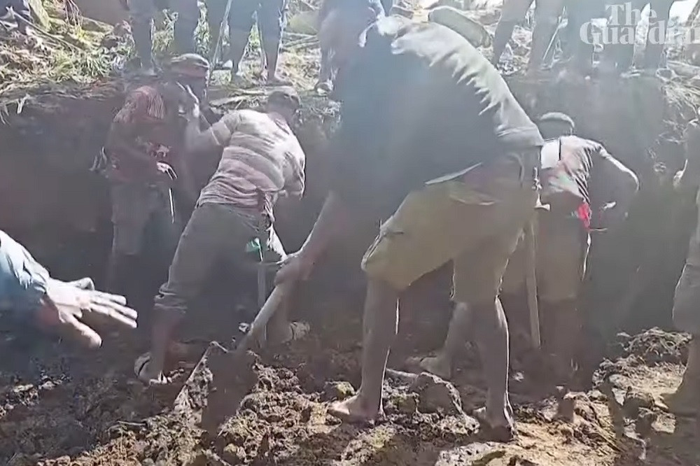 Người dân Papua New Guinea đào bới tìm người sống sót. Ảnh: The Guardian