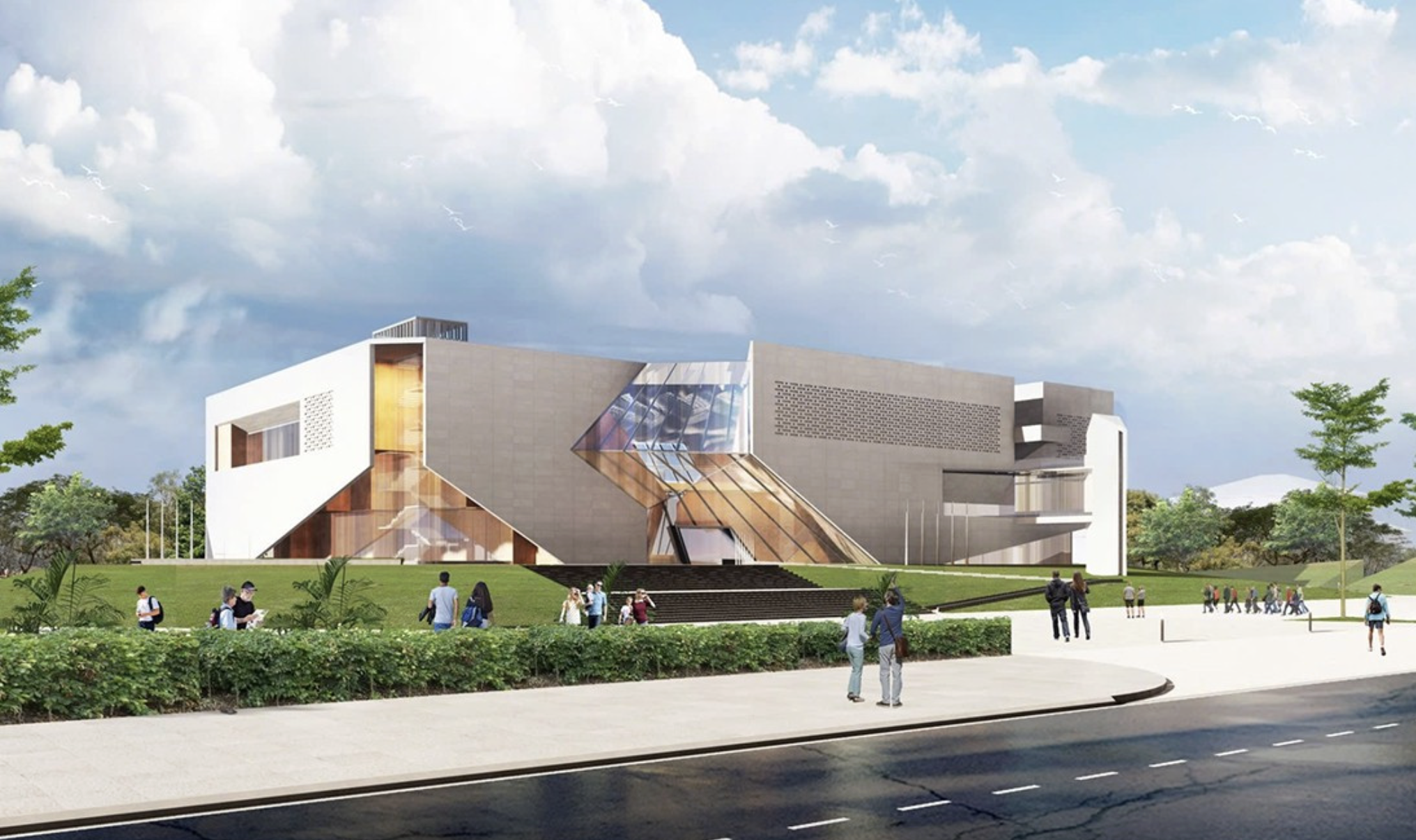 Phối cảnh Bảo tàng Hà Tĩnh - công trình vừa khởi công tháng 12-2025, được kỳ vọng sẽ là trung tâm công nghiệp văn hóa tầm vóc quốc tế của miền Trung - nơi không chỉ trưng bày hiện vật tái hiện lịch sử Hà Tĩnh mà còn là nơi tổ chức sự kiện, triển lãm, hoạt động văn hóa kết nối mạng lưới di sản UNESCO và mang tinh hoa văn học Hán - Nôm Việt Nam ra thế giới - Ảnh: TGCC