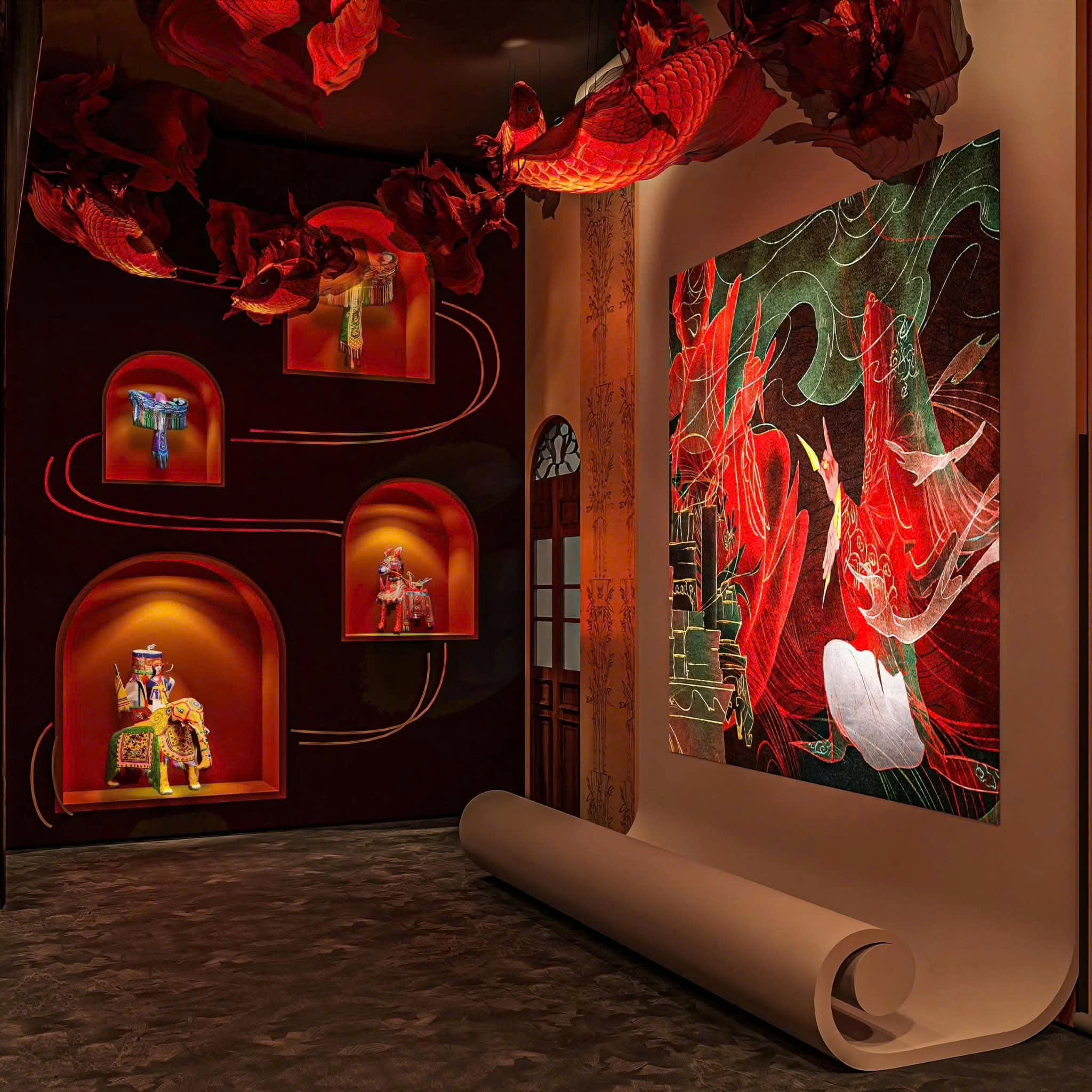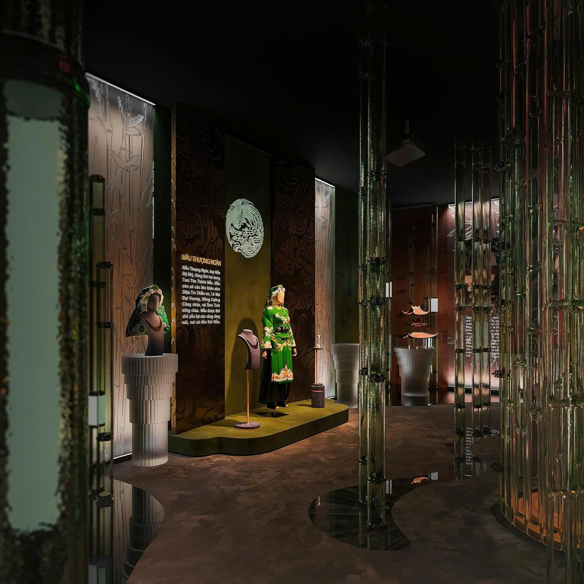 Di sản văn hóa là niềm cảm hứng sáng tác của thế hệ Alpha. Trong ảnh là phối cảnh Triển lãm Tam Tòa Thánh Mẫu của sinh viên Nguyễn Thu Trà, Đại học Kiến trúc - Ảnh: TGCC