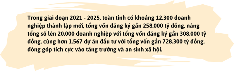 Tỉnh tập trung phát triển khoa học, công nghệ, đổi mới sáng tạo, chuyển đổi số, cải cách hành chính nhằm cải thiện môi trường đầu tư, kinh doanh, thu hút đầu tư và phục vụ nhân dân. Kết quả giai đoạn 2021 - 2025 cho thấy kinh tế An Giang có bước chuyển tích cực: Quy mô nền kinh tế tiếp tục mở rộng, cơ cấu kinh tế chuyển dịch đúng hướng, với tỷ trọng công nghiệp - xây dựng và dịch vụ ngày càng gia tăng. GRDP bình quân đầu người đạt trên 3.300 USD, tăng hơn 1.100 USD so với năm 2020, phản ánh nỗ lực không ngừng của tỉnh trong việc cải thiện đời sống nhân dân. Tổng thu ngân sách tăng khá, ước đạt gần 113 ngàn tỷ đồng, tăng bình quân 6,55%/năm, bảo đảm nguồn lực cho đầu tư phát triển và an sinh xã hội.