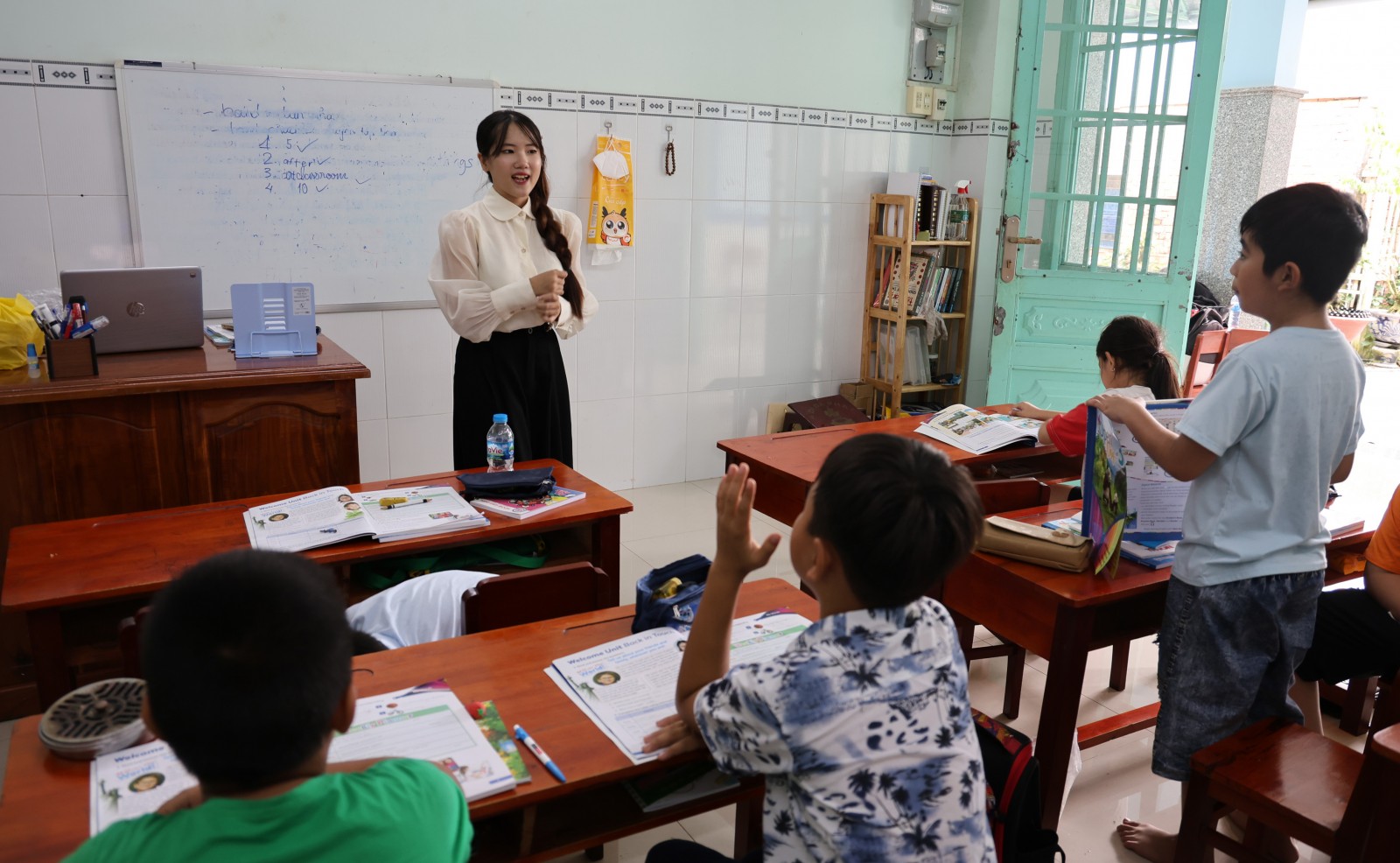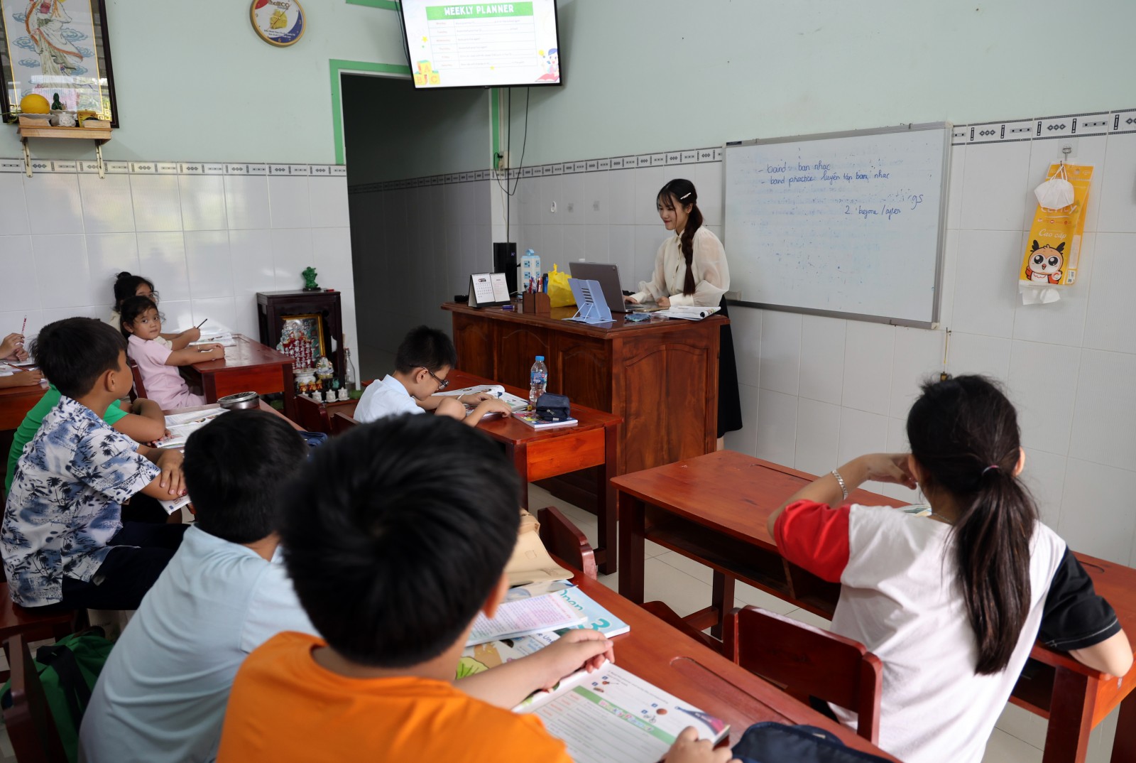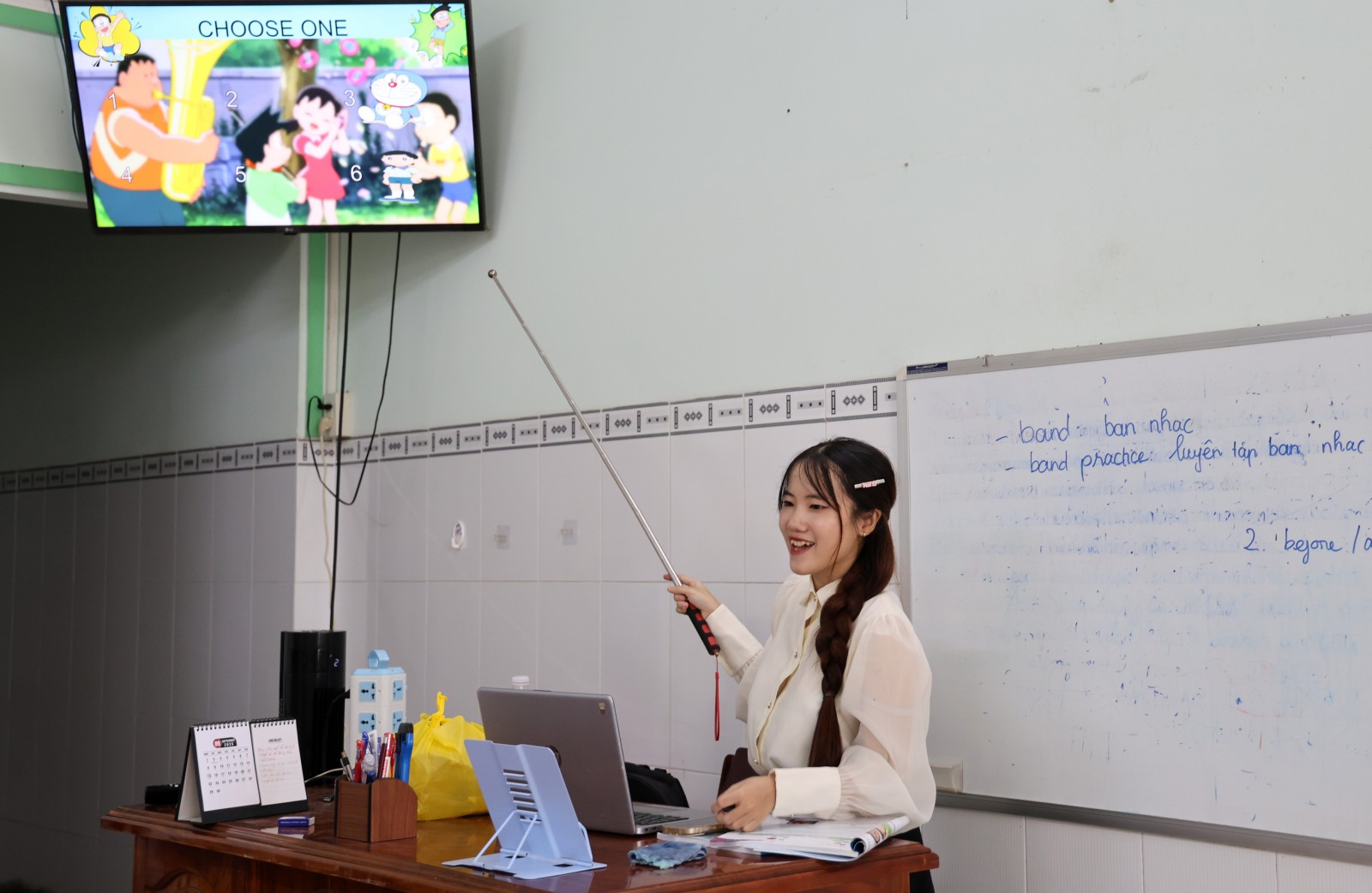 Bạn Nguyễn Thị Ngọc Quyên, giáo viên phụ trách lớp học vừa tốt nghiệp chuyên ngành sư phạm tiếng Anh. Quyên nhận công việc này với mong muốn tích lũy thêm kinh nghiệm đứng lớp, quản lý học sinh và góp một phần nhỏ cho mô hình ý nghĩa của ông Thọ.