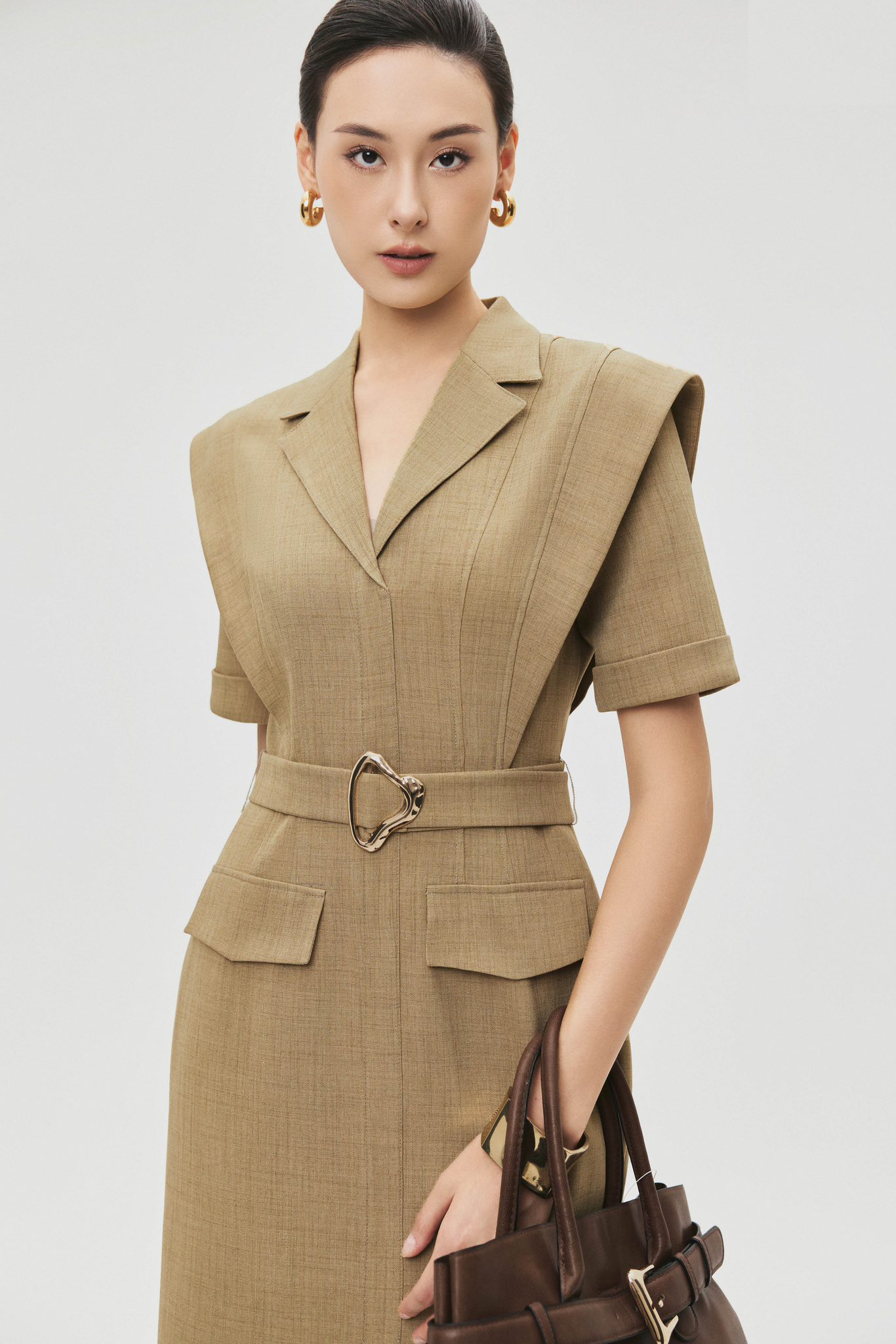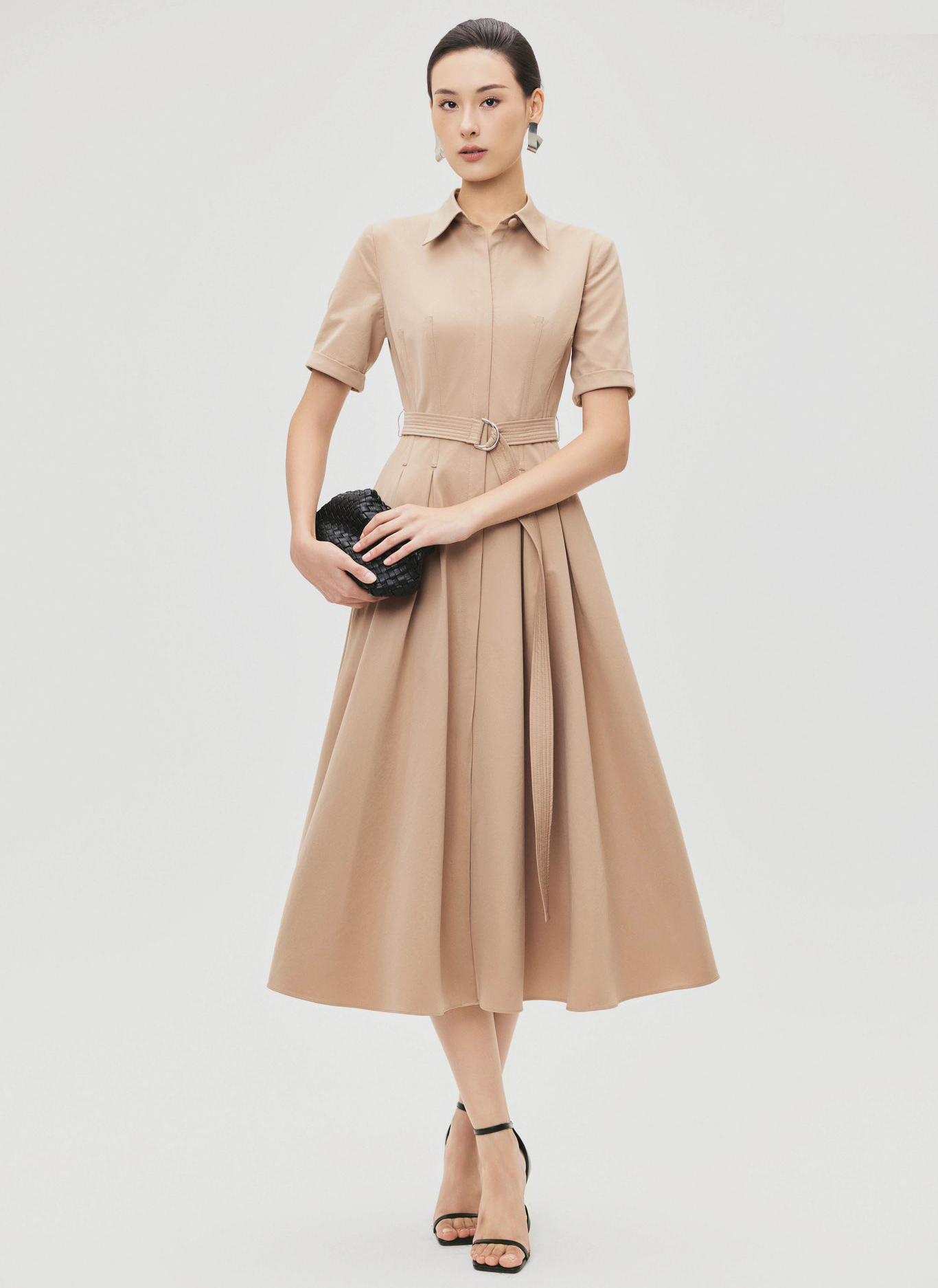 Khi phối đồ cùng váy sơ mi, hãy ưu tiên các phụ kiện, giày và túi có gam màu đơn sắc, thiết kế tinh giản sẽ giúp các bản phối trở nên thanh lịch và nàng dễ dàng ghi điểm mặc đẹp, sang trong ánh mắt của mọi người.
