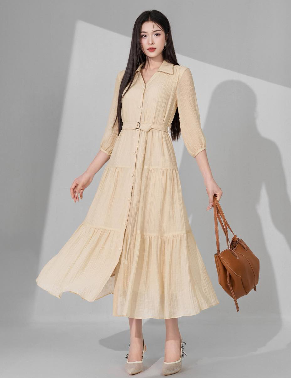Tối giản nhưng hiện đại và năng động khi nàng chọn đầm sơ mi để đi học, đi làm mỗi ngày. ẢNH: MACI