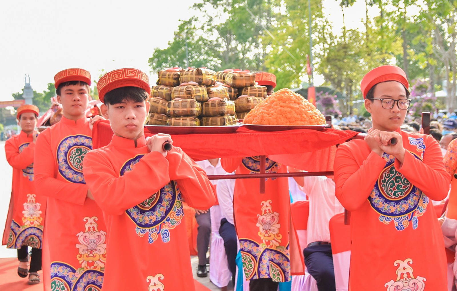 Bánh chưng là món không thể thiếu trong mâm cỗ ngày Giỗ Tổ. Ảnh: THỦY TIÊN