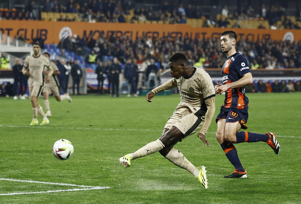 PSG chơi trận đấu tưng bừng trên sân của Montpellier. Phút 14, Mbappe kiến tạo để Vitinha ghi bàn mở màn cho cơn mưa bàn thắng trên sân Stade de la Mosson