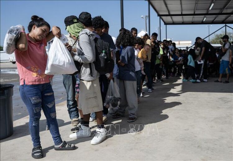 Người di cư từ Mexico chờ lên xe buýt để được trung chuyển khỏi bang Texas, Mỹ. Ảnh minh họa: AFP/TTXVN
