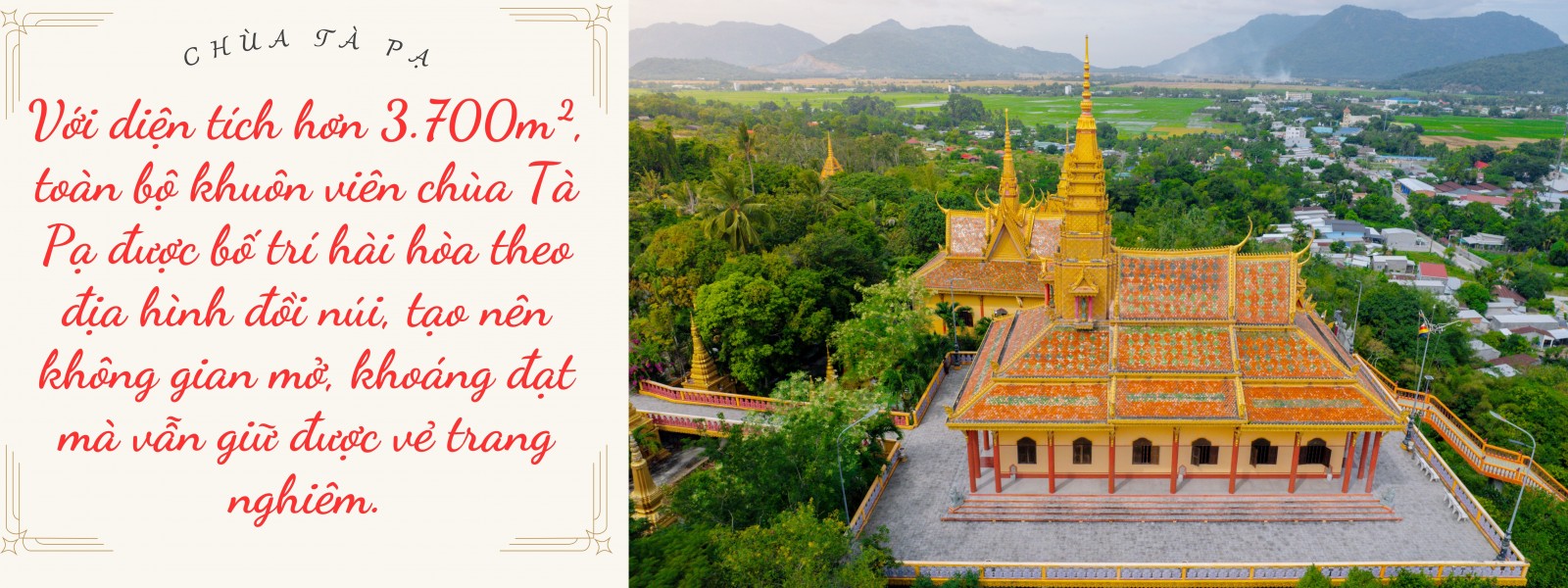 Tổng thể kiến trúc chùa Tà Pạ nhìn từ trên cao.