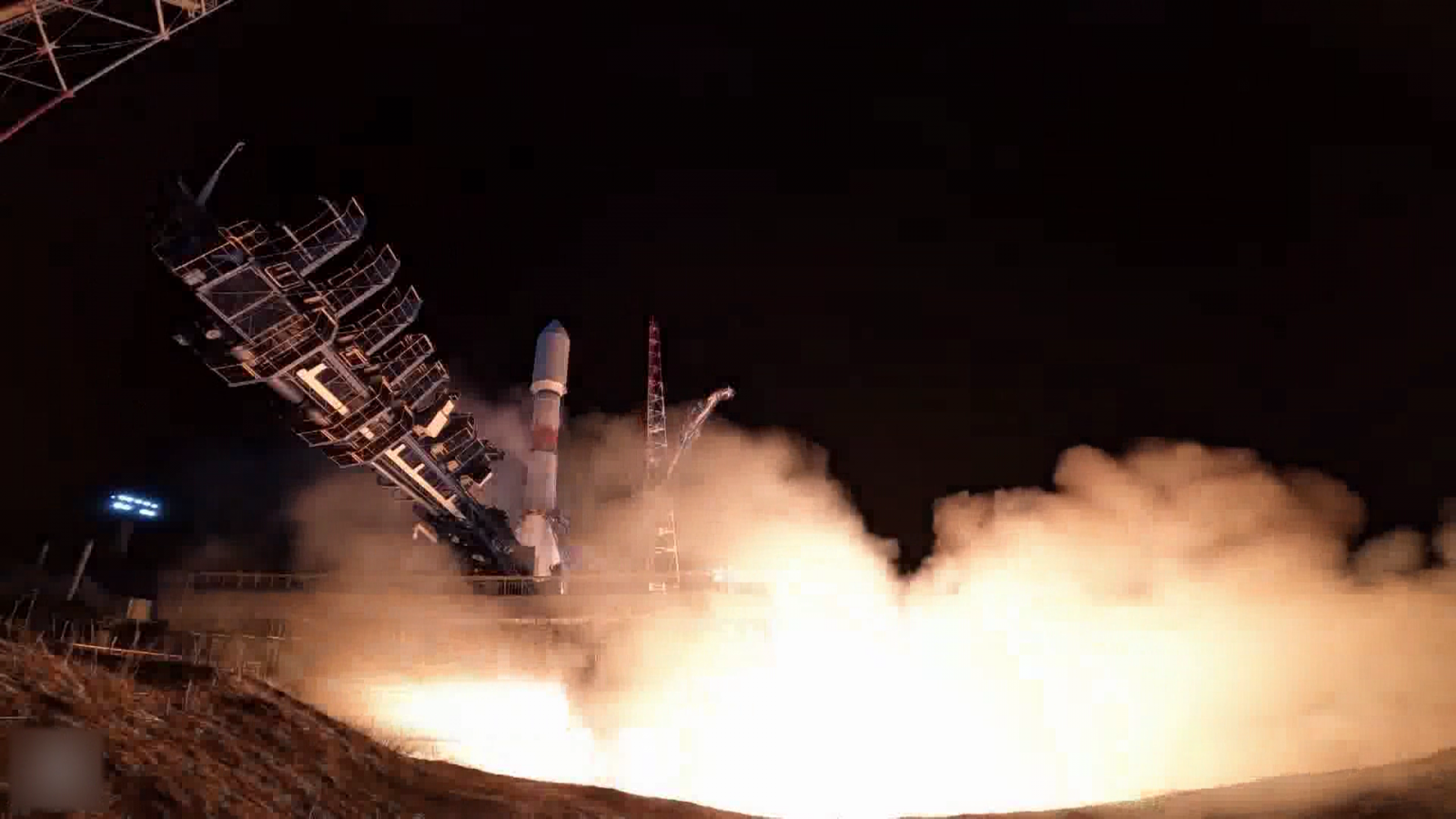 Tên lửa Soyuz-2.1b đang rời bệ phóng. Ảnh chụp màn hình