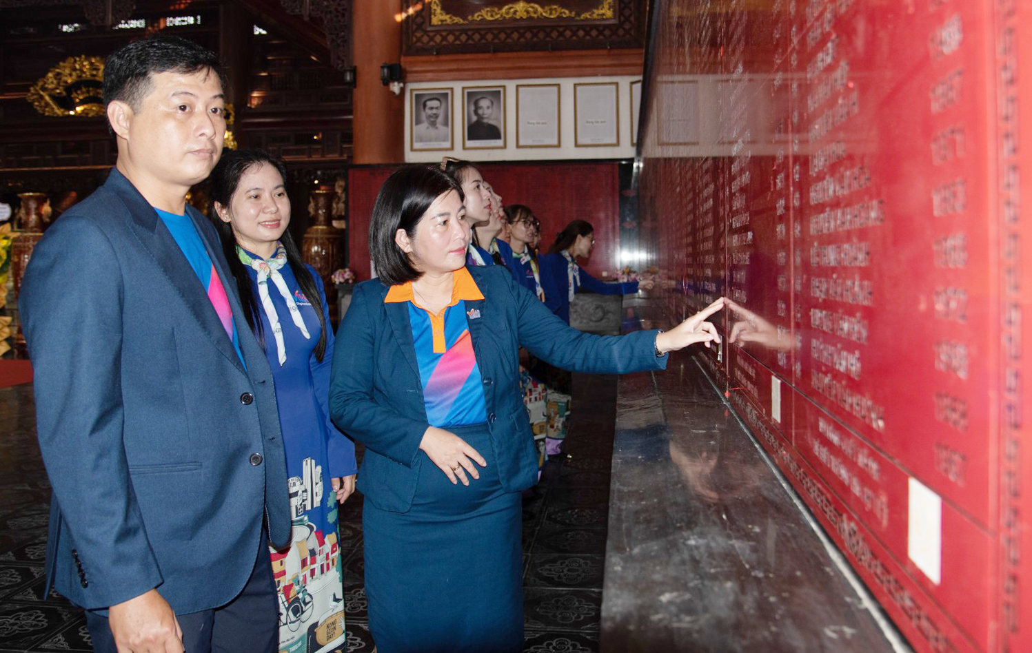 Cán bộ, nhân viên Ngân hàng TNHH MTV Số Vikki chi nhánh Kiên Giang dâng hương tại Đền tưởng niệm Anh hùng, liệt sĩ và người có công tỉnh.