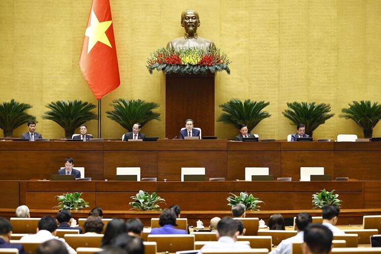 Quốc hội nghe Ủy viên Ủy ban Thường vụ Quốc hội, Phó Chủ nhiệm Thường trực Văn phòng Quốc hội Lê Quang Mạnh (được giao thực hiện nhiệm vụ của Tổng Thư ký Quốc hội) trình bày các dự thảo Nghị quyết của Quốc hội về công tác nhân sự. Sau đó Quốc hội biểu quyết bằng hình thức điện tử thông qua các Nghị quyết: