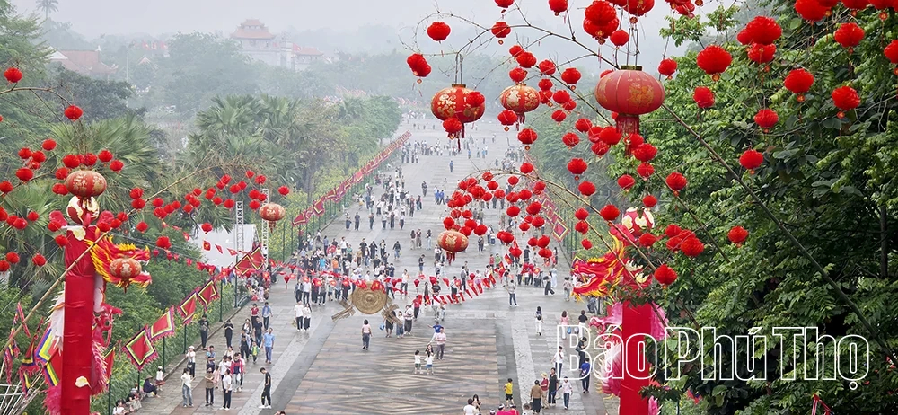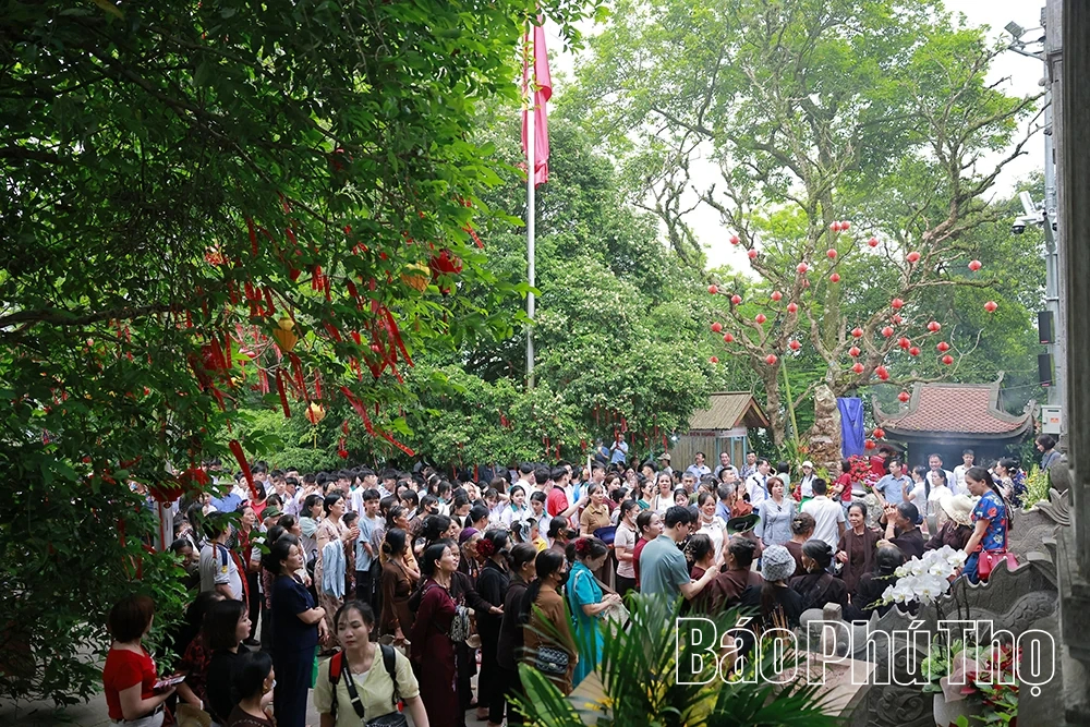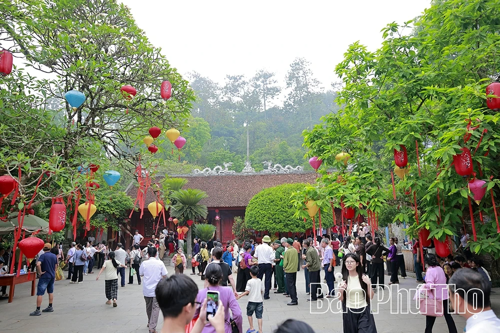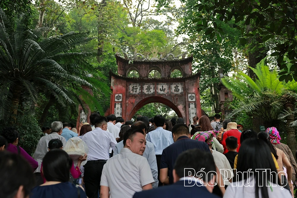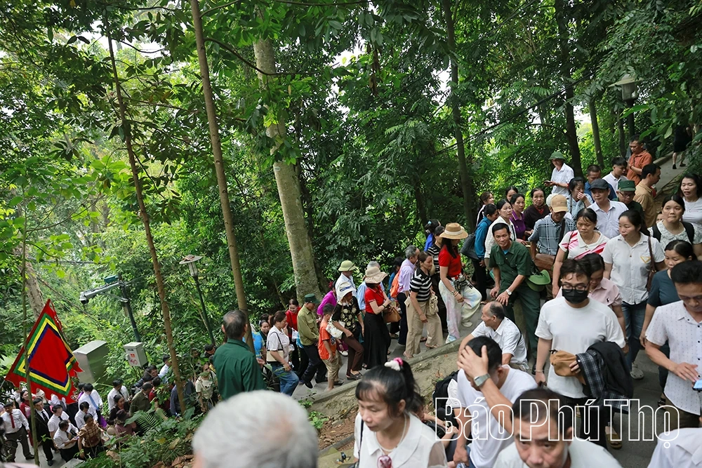 Trong không gian bảng lảng khói sương nơi núi Nghĩa Lĩnh linh thiêng, đông đảo người dân từ khắp mọi miền Tổ quốc đã về dâng nén tâm hương, thành kính tri ân công đức Tổ tiên. Giữa đại ngàn xanh thẳm, từng đoàn người nối nhau tạo nên khung cảnh trẩy hội náo nức, rộn ràng.